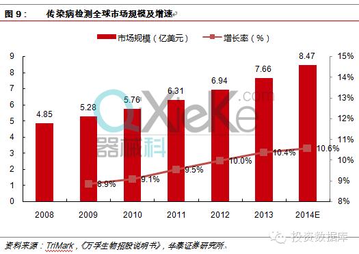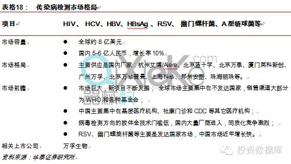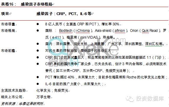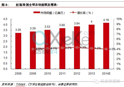 2011年主管部门开始大力推动限制抗生素使用,使得感染因子检测市场急剧放量,行业连续保持超高速增长。此外医药分家,医院对自身利益的追求也为感染因子检测市场长期发展带来了巨大的机遇。 妊娠检测