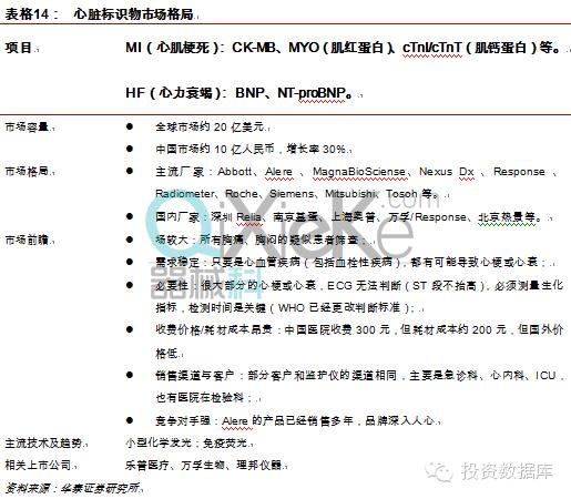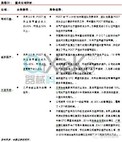 根据这一模型心脏标识物、血气检测、糖化血红蛋白、血糖仪专业市场是较好的投资选择。 选标的关注业务弹性和竞争优势