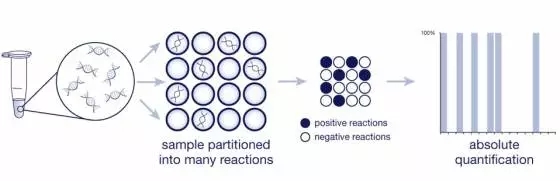 数字PCR的原理 这款芯片式聚合酶链式反应分析系统引进美国life 技术。2015年科维思在国内第一个同life 开展了设备本地化合作,基于自主知识产权和产品注册申报,预期将成为中国乃至全球的第一款数字PCR技术平台,服务于肿瘤液体活检(和现有产品相比)以更高的灵敏度和特异性,使患者治疗能够带来预期的效果,避免耽误治疗的最佳时间。 今年3月份, 阿斯利康新上市第三代靶向药泰瑞沙。AZ在比较了NGS,qPCR和数字PCR的检测结果后认为,数字pcr是AZ9291伴随诊断的首选。检测灵敏度更高,操作更加方便快捷,结果更加明确。科维思作为预期第一个拿到医疗器械注册证的企业,前期已经和阿斯利康进行了数次沟通,可以帮助AZ解决样本检测统一标准、数据全流程可追溯,以及设备快速进院的问题。 数字PCR应用领域通览 尽管qPCR技术自上世纪90年代后经历了长足的发展,但数字PCR由于其通量高、速度快、精准度高等优势在多学科领域展现出丰富的应用价值。 基因组变异研究领域,主要存在的问题是如何在群体基因组水平上检测单核苷酸多态性(SNP)和拷贝数变异(CNV)。而传统qPCR检测面临的问题主要是精确度较低,而数字PCR技术带来的极高的扩增特异性在稀有突变检测方面具有天然的优势,因此在癌症标志物检测、无创产前检查、线粒体突变检测等方面,具有极强的应用潜力。 除此之外,dPCR在病原微生物检测、microRNA研究、基因表达研究、NGS测序文库的绝对定量、表观遗传学直接相关的DNA甲基化定量检测、ChIP定量鉴定等领域的应用都令人极为期待,而在转基因成分鉴定、分子标准品精确定量、环境样本检测等具体的应用方向上,已经有大量实验数据和结果证明了dPCR技术的优良性能。