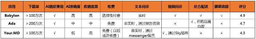 Babylon Health历史融资情况(数据来源:crunchbase) 2016年1月,Babylon Health首次融资便轻松拿下2500万美元,由Kinnevik AB领投,Hoxton Centures、Richard Reed和Mustafa Suleyman等跟投,用于支撑Babylon AI诊疗平台的搭建,为用户提供个性化的健康咨询服务。 2017年4月,Babylon Health完成了6000万美元B轮融资。这笔投资被认为是欧洲医疗保健领域最大的一笔融资,帮助Babylon实现以下目标: ▲ 超过100万次应用下载; ▲ 全球注册量增加近600%,达到80万注册用户; ▲ 每日咨询和分诊量增了9倍; ▲ 超过4/5的用户对Babylon都是5星好评。 两大主要竞争对手 这种人工智能在C端用户的应用,Babylon并非独家,仅在英国本土就有另外两家竞争对手Ada和Your.MD。动脉网(微信:vcbeat)对这三家AI医生做了简单的分析。