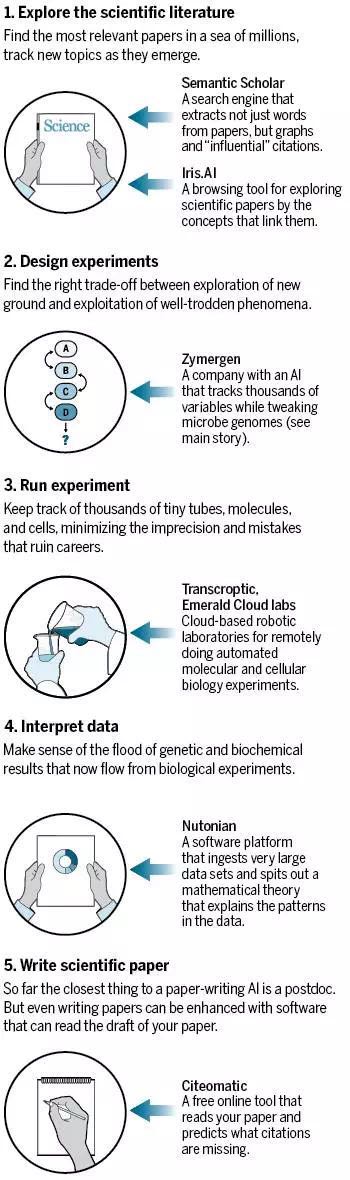 科学的许多环节,都可以交由人工智能来完成(图片来源:《科学》) 而对于生物学家来说,这些发现又是令人激动的。因为他们可以通过提高产量这一结果出发,进行反向推理,这有望揭开更多不为人所知的基因的功能。还有一种更终极的可能,那就是有一天人工智能程序能够自己去寻找这背后的机制。到那时,恐怕人类科学家真的没有用武之地了。 参考资料: [1] A new breed of scientist, with brains of silicon [2] Zymergen官方网站 |