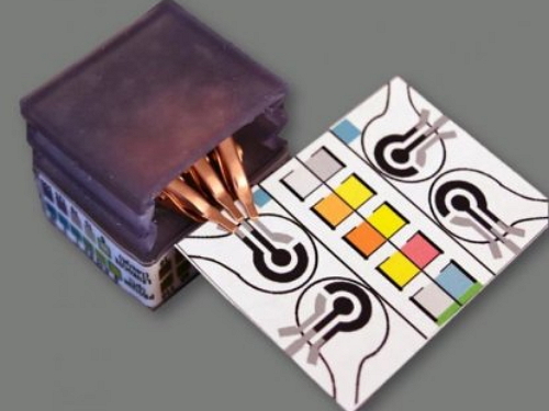 一种新型的纸质版医学诊断设备(图片来源:普渡大学) 近日,来自于普渡大学的科学家们推出一款新型的医疗检测设备——完全由纸制成,利用电化学方法分析生物标志物,通过纸张颜色变化反馈检测结果,实现疾病诊疗的目的。 这一自我供电、纸质版诊断装置(self-powered,paper-based electrochemical devices,SPEDs)可以与便携式恒电位仪相连,实现自我供电、自动化检测过程,便于患者自己操作。它的设计定位是“即时诊断工具”。 普渡大学的工业和生物医学工程助理教授Ramses V. Martinez将这一设备比喻成一个“便携式实验室”,并不需要水电或者其他的高端设备。他和团队希望该检测装置可以服务于偏远地区或者军事基地的人,便于他们自行检测疾病。相关研究成果于8月22日发表在《Advanced Materials Technologies》期刊。 首个纸质版诊断设备,相当于便携式实验室(视频来源:普渡大学) 根据视频展示,SPEDs的表层由未经处理的纤维素纸构建血液样本的检测通道,共设置了4个电化学检测区域和10个比色分析区域。这些“微流控通道”允许精准的检测,且通过颜色的变化反馈特定的检测结果。 为了准确读取颜色信息,研究团队开发了一个机器视觉算法,用于自动识别和量化10个比色分析区域的颜色变化。通过手机拍照功能获取颜色图像,借助算法程序分析颜色变化背后的病理信息,从而为快速提供诊断结果创造了可能,并有望与远程医疗结合。 SPEDs的底层是一个“摩擦发电机”或者热电发生器(TEG),通过摩擦或者挤压产生运行诊断检测所必须的电流。为了便于使用,研究人员设计一个廉价的手持装置——恒电位仪,它可以与SPED简易连接,便于患者自行检测。 SPEDs有着低成本、轻便、灵活和便于快速使用的特点,其具体的检测过程:将患者的血液点滴至设备的圆形区域,或者将SPEDs的“自我移液检测区域”直接浸入样本中。随后,SPEDs(血液样本分析)+便携式恒电位仪(供电)+机器视觉算法(识别颜色编码的信息)的组合,即可实现诊断过程。 SPEDs可以执行“多路复用”(multiplexed)的分析任务,即检测多种生物标志物,例如葡萄糖、尿酸、乳酸、酮、白细胞等等,这些指标与肾脏功能、营养不良和贫血有关。下一步,研究团队将继续优化这一设备,用于更复杂的检测任务,例如登革热、黄热病、疟疾、艾滋病和肝炎等疾病 |