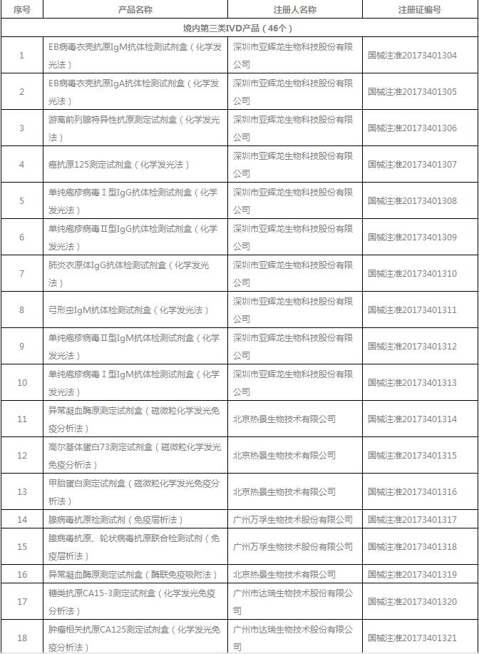 17年7月总局批准注册IVD产品目录出炉