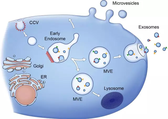 外泌体里含有许多对疾病诊断具有重要作用的分子(图片来源:《The Journal of Cell Biology》) 外泌体是细胞分泌的一种纳米级别的小囊泡,直径约为30至150纳米,它们携带重要的信息,包括蛋白质、miRNA等,帮助细胞之间通信。以前的研究表明,外泌体内容物可以作为诸如癌症,神经变性疾病和肾脏疾病等疾病的标志物。尽管它对疾病诊断非常重要,但现有的外泌体分离方法需要高速离心。它需要使用大型机器,耗费近24小时的时间才能获得,非常不便。而高离心力也可能破坏囊泡。降低样品的质量。 这项研究有望解决这一难题。在论文中,研究人员们提供了一种通过微流体和声学的独特组合从体液样品中捕获外泌体的新颖方法。这种方法分离得到的外泌体,基本上不改变其生物或物理特征,为开发评估人类健康以及疾病诊断和进展提供了有吸引力的新方法。 他们开发的原始声学分选装置由两个倾斜的声学换能器和一个微流体通道组成。当这些传感器产生的声波相互碰撞时,它们形成产生一系列压力节点的驻波。它原本被用于分选细胞——每当细胞或颗粒流过通道并遇到一个节点时,压力会将细胞引导离开中心一点点。细胞移动的距离取决于大小和其他属性(如可压缩性),这样,在到达通道末尾时,不同大小和性质的细胞就能够被分离开来。