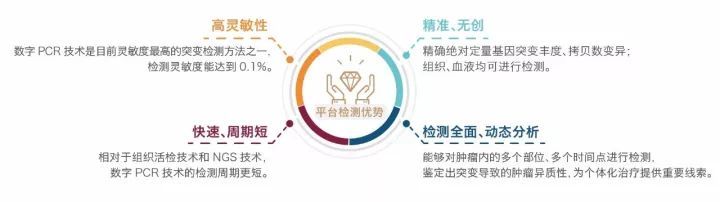 该系统基于单分子模板PCR扩增,可进行多种变异形式(SNV、InDel、重排和扩增)的检测,能够检测血液cfDNA突变丰度0.1%的稀有突变位点。与其他技术平台相比,生物芯片阅读仪(Digital PCR)平台操作简单、方便、精准,可实现绝对定量,灵敏度高,在临床上有很大应用前景。