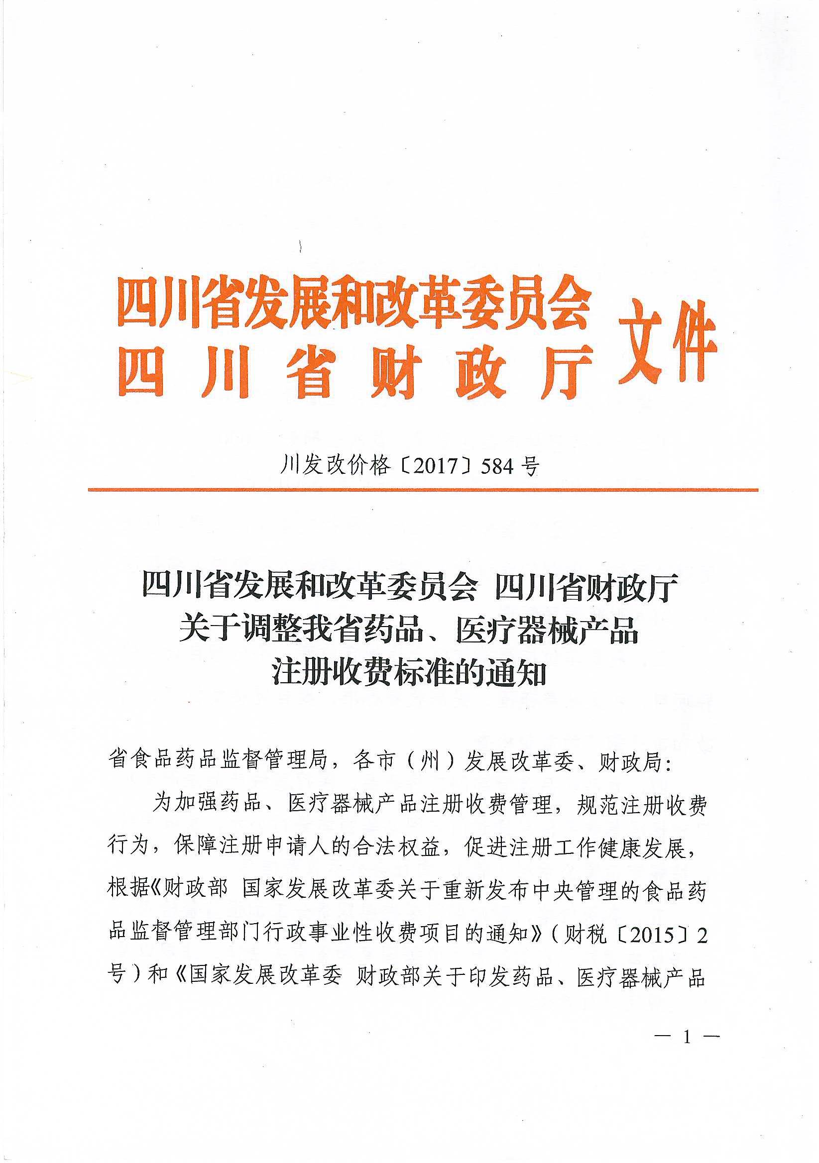 四川省发展和改革委员会、四川省财政厅关于调整我省药品、医疗器械产品注册收费标准的通知