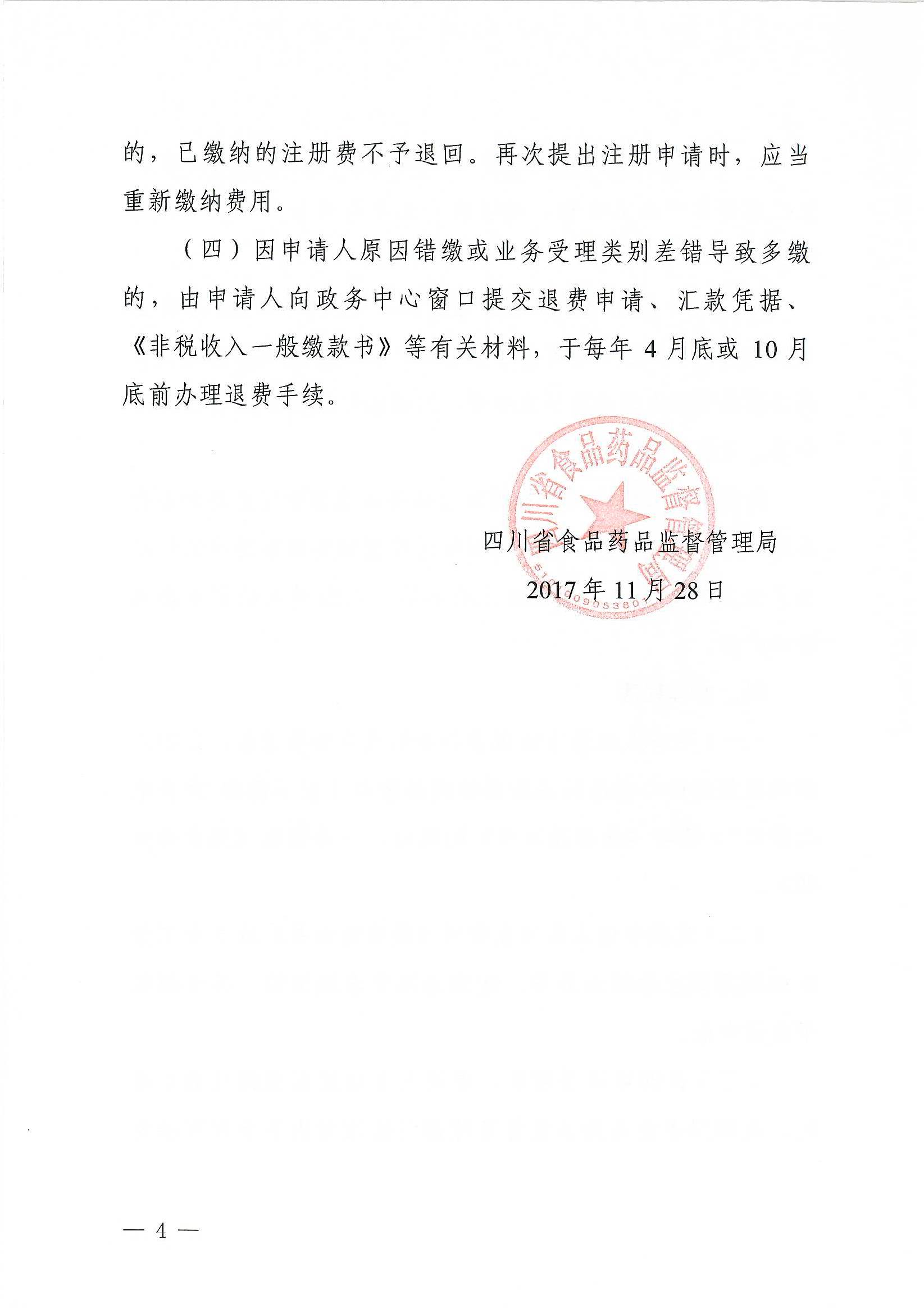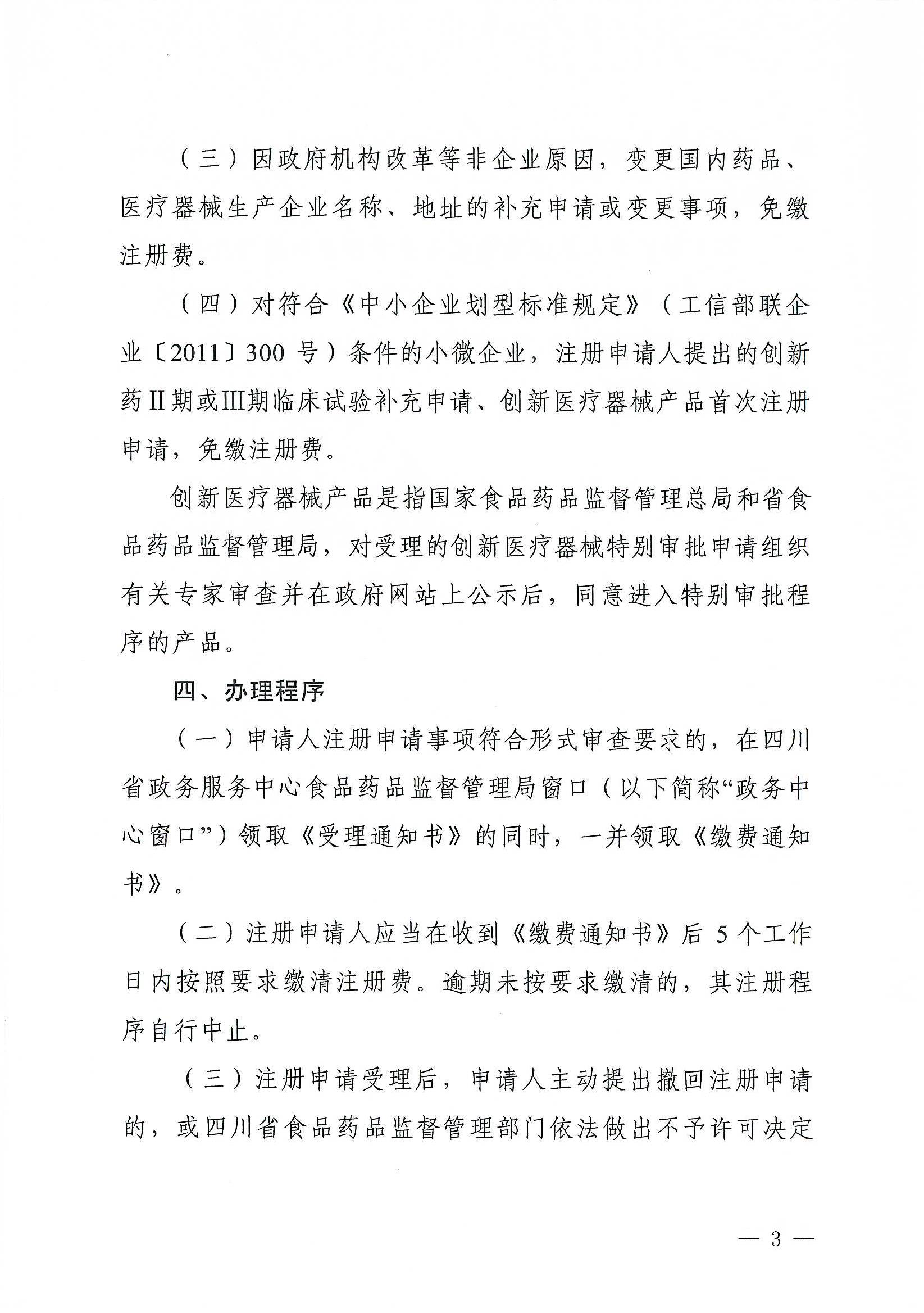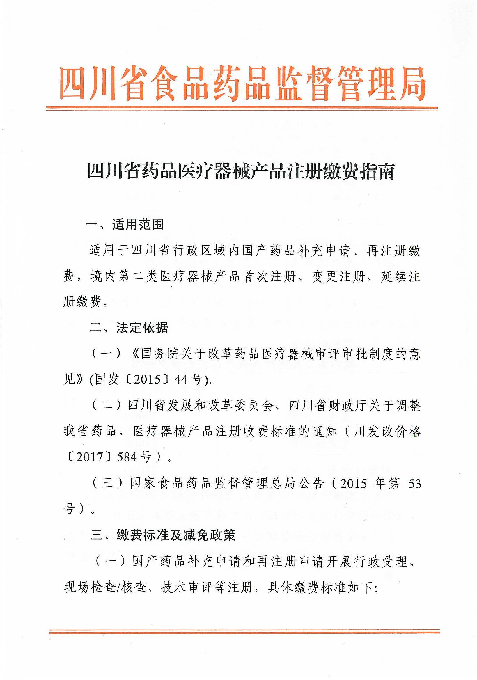 2017年11月30日,四川省食品药品监督管理局发布了关于行政事业性收费标准的通知,自此四川省局将对医疗器械施行产品收费制度,首次注册费用为7.9万元,变更注册费用为3.3万元,延续注册费用为3.3万元。