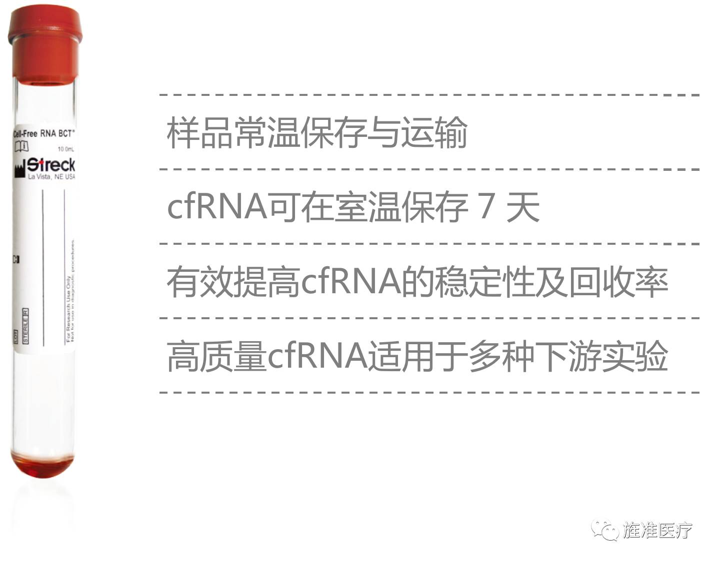 Cell-Free DNA BCT是稳定游离DNA(Cell-Free DNA,cfDNA),循环肿瘤细胞(Circulating Tumour Cell,CTC)和循环肿瘤DNA(Circulating  Tumour DNA,ctDNA)的血液游离核酸保存管。Cell-Free DNA BCT含有专利稳定剂来稳定cfDNA,保证其本身在一定时间内不会降解;同时稳定血液细胞,防止基因组DNA的释放影响cfDNA的浓度。因此,STRECK游离核酸保存管通过“攘外安内”的双重稳定机制,确保cfDNA的高质量获取。