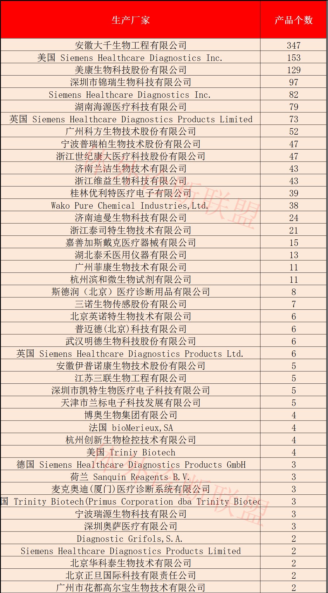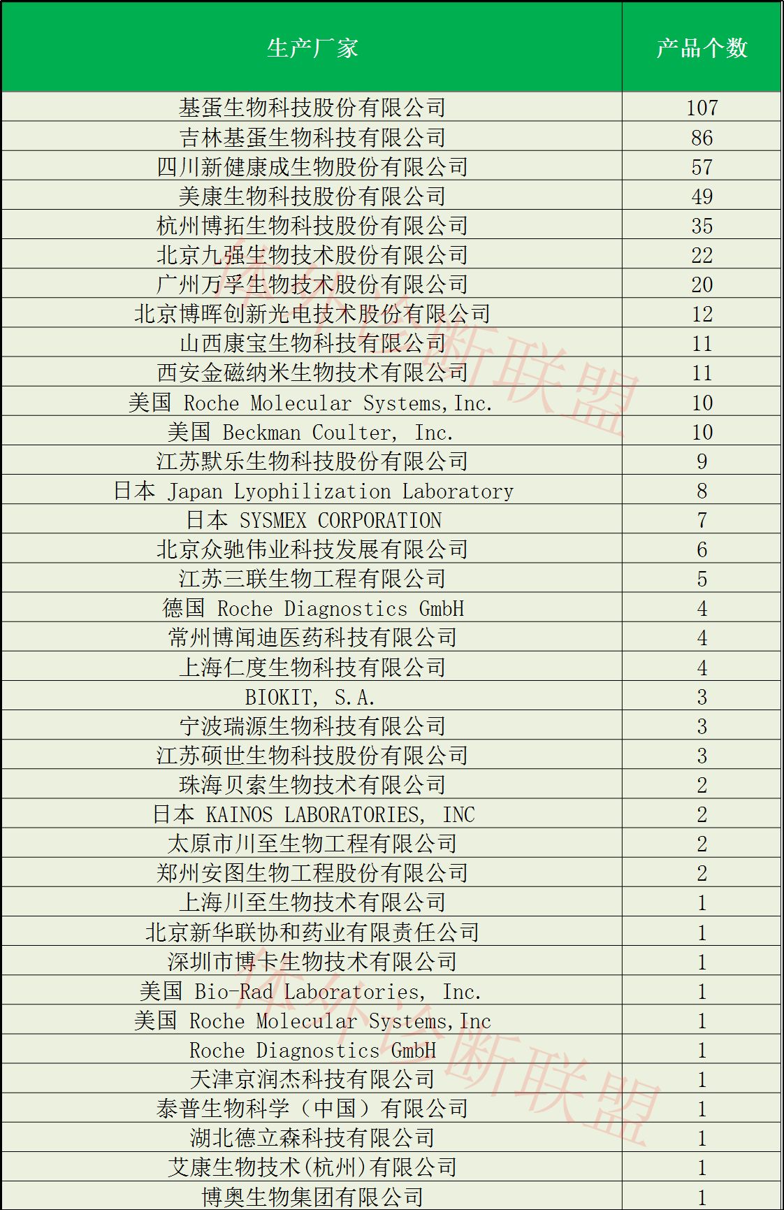 据文件了解,本次通过的505个体外诊断产品分别来自38个不同的厂家。从这张表来看:这次国产真的赢了!数量前十的竟然全部都是国产体外诊断厂家,排名第10的罗氏也仅仅入围了10个产品......