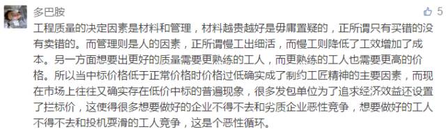 导语 不到一个月的时间里,《人民日报》两次发文诟病“最低价中标”,实为罕见!建设工程质量因“最低价中标”问题频发,使得整个行业怨声载道,也在给业内人士敲响警钟:“最低价中标”原则一天不变,行业就很难有什么工匠精神,更不要说什么中国品牌!” 2017年5月31日,《人民日报》发文《质量应是企业立身之本(一线视角)》,首次诟病最低价中标。 “在招投标中,低价就能中标,造成大家不比质量,只比价格低。”在不久前开展的全国人大常委会产品质量法执法检查中,一些企业主抱怨,目前,一些地方在招投标中存在的“低价中标”现象,已经成为企业提升产品质量的突出障碍,亟待治理和规范。 一般情况下,按照市场规律,招投标中的投标价或中标价不得低于成本价。然而在现实中,部分招标单位在招标环节忽视质量要求,唯价格论,造成中标价低于甚至远低于成本价。这些以低于成本价中标的企业,为获取利润,只能在原材料采购、生产制造等方面压缩成本,以牺牲产品质量来弥补亏损,从而出现“劣币驱逐良币”现象。在执法检查中,一家曾经获得过“政府质量奖”的线缆企业直言:生产企业没有利润空间,被逼得偷工减料,突破底线。事实上,因低价中标导至产品质量不过关,甚至酿成安全事故的案例,并不鲜见。 “低价中标”现象之所以出现,和法律法规执行不严、监管机制不完善有一定关系,而从根源上讲,是鼓励优胜劣汰的竞争环境不足导至的。当有的企业每年拿出很多利润来搞研发、创新,提升产品质量时,个别企业靠偷工减料、假冒仿制也能同台竞技,甚至竞争成功。长此以往,就没有企业愿意花精力搞研发和创新。这不仅严重扰乱了市场经营秩序,对整个制造业也是一个打击。解决之道,自然是进一步完善市场环境,让企业拿产品质量说话,让过得硬的产品叫得响、站得稳,从而为制造业大国打下产品质量的基础。 令人慰藉的是,在今天的中国市场上,靠偷工减料甚至假冒伪劣来获利,空间正日益逼仄。一方面,目前,随着监管部门从标前、标中到标后的全流程监管,招标投标活动逐步规范化,通过低价中标进而谋求灰色利益的可能性被大大降低。相反,一些低价中标的企业经常由于利润极低,造成交期延迟,且无法保证质量,让招标方付出了更高的代价。在工程领域,有人将这一现象戏称为“饿死同行、累死自己、坑死业主”。另一方面,随着中国制造业的整体转型,在产品质量上不愿意投入的企业,生存也将愈发艰难。我们应该顺应和把握好这一有利于提升产品质量的趋势,使现行法律规定更具可操作性,维护优胜劣汰的市场规则,使守法企业一路绿灯、违法企业处处受阻,让企业主动对产品负责、对消费者负责、对社会负责。 质量是企业的立身之本。我国产品质量法也规定,企业要承担产品质量的主体责任。提升产品质量归根到底要靠企业自身,只有一件件产品都有质量、一家家企业都以质量为目标,经济发展才更有质量。当前,中国市场正在实现消费升级,产业结构正悄然发生变化,高端制造业、现代服务业等领域将成为产业投资的热点。这些领域的竞争将更加激烈,对质量和品牌的要求会更高,只有坚持以质量为本,把质量问题上升到价值观和现代企业理念的层面来认识,我们才可能后来居上,确立自身在国际竞争中的优势。 2017年6月26日,《人民日报》再次发文《最低价中标,该改改了》,直言最低价中标该改改了。 “一些地方的招投标制度可谓‘简单粗暴’。只要‘最低价中标’原则不变,就很难有什么工匠精神、百年老店!”四川仟坤集团副总裁周述军说。 记者近日在江苏省的苏州和无锡、湖北省的武汉和宜昌、四川省的成都和德阳,对3省6市的100多家实体企业进行调查时发现,“最低价中标”成为企业集中诟病的问题。 多位企业负责人表示,一些地方和国企招标采用“最低价中标”,这种“重价格、轻质量”的指挥棒,不符合新发展理念,阻碍了中国经济转型升级。 容易导至优汰劣胜,埋下安全隐患,影响企业创新的积极性。 ■ “原料一吨8000元,可项目中标价格居然只有六七千元,结果往往是造假的胜利,做优的出局” 一套自动售检装备,中标价居然比制造成本还低30%。这不是天方夜谭,而是让不少企业无奈的招标现实。 “现在很多PPP(政府和社会资本合作)项目,由政府或大型央企牵头招标,往往是最低价中标,压价非常严重。本来每个车站的模块成本应该是500万至550万元,但是中标价格居然只有350万元。从设备集成商到材料供应商,压力都非常大。” 国内份额最大的城市轨道交通自动售检票设备供应商——苏州雷格特智能设备股份有限公司副总经理袁鑫说。 企业反映,许多国企和地方政府的招标项目都采取“最低价中标”原则。然而,“最低价中标”这根指挥棒危害甚大。 ——“最低价中标”助长以次充好,导至产品和工程建设质量下降,优汰劣胜。 “很多地方招标,原料一吨8000元,可项目中标价格居然只有六七千元,很多正规企业根本没办法做,结果是造假的胜利,做优的出局。”四川国光农化股份有限公司副总经理何颉说。 袁鑫也表示,国内招标压价严重,可产业链上每个环节都还要赚钱,因此上下游企业都在千方百计挖掘“价格低廉、质量过得去但不是特别好”的产品来投标。武汉长兴电器发展有限公司副总经理李卫红坦言,“最低价中