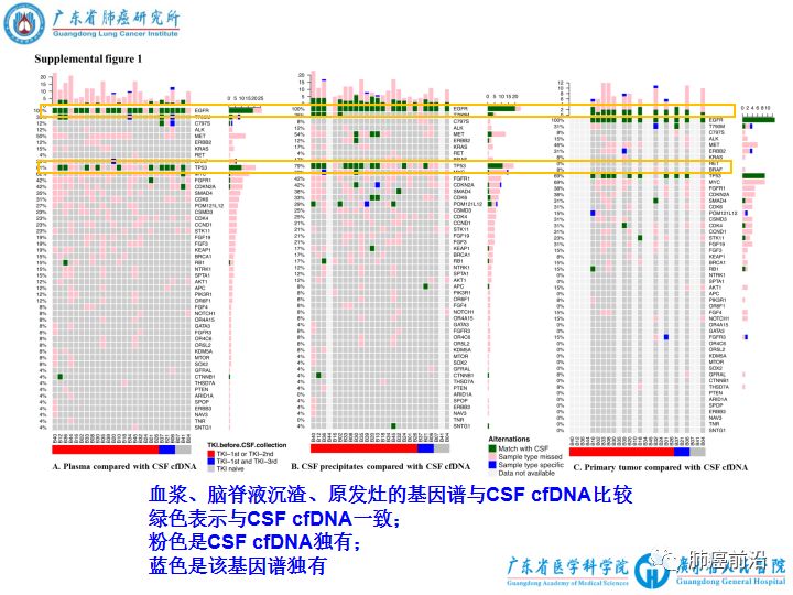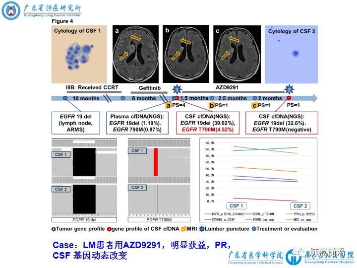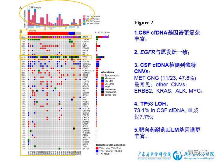 来源:肺癌前沿 广东省人民医院 郑媚美 黎扬斯 癌脑膜转移的诊治极其棘手,吴一龙团队于《Annals of Oncology》在线发表脑膜转移最新成果:脑脊液上清cfDNA可检测到脑膜转移的独特基因谱,可作为液体活检的重要途径。自2016年发表《JTO》首次提出脑膜转移更常见于EGFR突变患者,2017年《CCR》提出脑脊液CTCs诊断脑膜转移的敏感性与优越性,这也是该团队在肺癌脑膜转移领域发表的第三个重要文章。 约3.4%–3.8%非小细胞肺癌会发生脑膜转移,而其更常见于EGFR突变的患者,占9.4%。EGFR靶向治疗显著延长患者的生存期,但脑膜转移仍然十分棘手。由于脑膜病灶难以获取,对脑膜转移耐药机制知之甚少,越来越多的关注去探索是否可以代而使用液体活检即血浆和脑脊液,来追踪肿瘤的基因进化,从而阐明脑膜转移的机制。 血浆cfDNA已广泛用于液体活检,但它无法代表来源于颅内病灶的cfDNA,而脑脊液在在既往报道中有望成为CNS转移液体活检的重要途径。但目前在NSCLC,脑脊液在脑膜转移的液体活检的研究少,EGFR突变脑膜转移的耐药机制仍不清楚。 因此,本研究探讨脑脊液在EGFR突变非小细胞肺癌脑膜转移中作为液体活检介质的价值,及其肿瘤发展进化过程。 本研究的主要研究发现 在EGFR阳性的非小细胞肺癌脑膜转移的患者中,脑脊液cfDNA的EGFR和原发灶一致,同时发现独特的基因谱,提示脑脊液cfDNA用于脑膜转移的液体活检的重要价值。 脑脊液cfDNA的优势 1、血脑屏障使得只有极少数的神经系统cfDNA释放到血浆中,故血浆cfDNA反应颅内病灶的价值有限;我们的研究进一步证实,脑脊液cfDNA更能反应颅内的基因谱。 2、血浆中肿瘤来源的cfDNA容易受背景cfDNA的干扰,而脑脊液中肿瘤来源的cfDNA含量高,不易受背景DNA的干扰。 3、与血浆cfDNA优于CTCs类似的道理,CSF cfDNA比脑脊液沉渣包含更全面丰富的基因信息。 4、脑脊液cfDNA可用于动态监测脑膜转移的肿瘤负荷。 如何从进化的角度看待脑膜转移的机制 染色体和基因水平上的不稳定导至CNVs(Copy number variations)的不断进化,本研究在脑脊液cfDNA中发现独特的CNVs,提示该CNVs可能是肿瘤进化的结果,甚至可能是脑膜转移的驱动主导因素。其中临床最密切相关的CNV是MET拷贝数增加,且在既往动物及细胞实验中, EGFR阳性的脑膜转移中MET拷贝数增加可导至对gefitinib耐药,且该耐药模型对EGFR-TKI和crizotinib联合治疗敏感,提示MET拷贝数增加可能是脑膜转移的一个耐药机制。总的来说,CNVs通过不同的基因轨迹影响不同通路的表达,进而产生具有选择优势的细胞群。所以本研究推测,在脑脊液cfDNA中发现的独特CNVs可能是肿瘤进化过程中出现脑膜转移的关键。 本研究在脑脊液cfDNA发现SCLC转化的分子特征:包括大量的TP53 LOH、RB1 、MYC和FGFR1变异。而既往报道中,SCLC转化的腺癌患者会保留腺癌特征的同时,也包含SCLC的某些分子特征。尽管本研究结果并未发现SCLC形态上的转化,但我们猜测,以上检测到的SCLC分子特征很可能是肿瘤进化的早期事件,需要进一步证实。 本研究在脑脊液cfDNA中发现T790M的突变率为30.4%,远远高于之前的报道。脑脊液T790M的检测可能与标本及检测手段有关,提示本研究中使用NGS和CSF cfDNA的优越性。 |