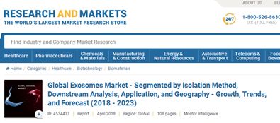 Research And Markets预计全球外泌体市场在2018年至2023年期间的复合年增长率约为18.0%。外泌体在细胞通讯中发挥着至关重要的作用,细胞通讯囊括多种生物分子的传递,包括脂质、蛋白质和核酸。这个市场受到越来越多的研究和开发的推动,特别是在药物输送、癌症免疫治疗和诊断方面。区域分析、资金的增加,临床研究机构的庞大基础以及更好的医疗保健基础设施开发新技术的兴起,都将有助于北美地区主导全球外泌体市场。