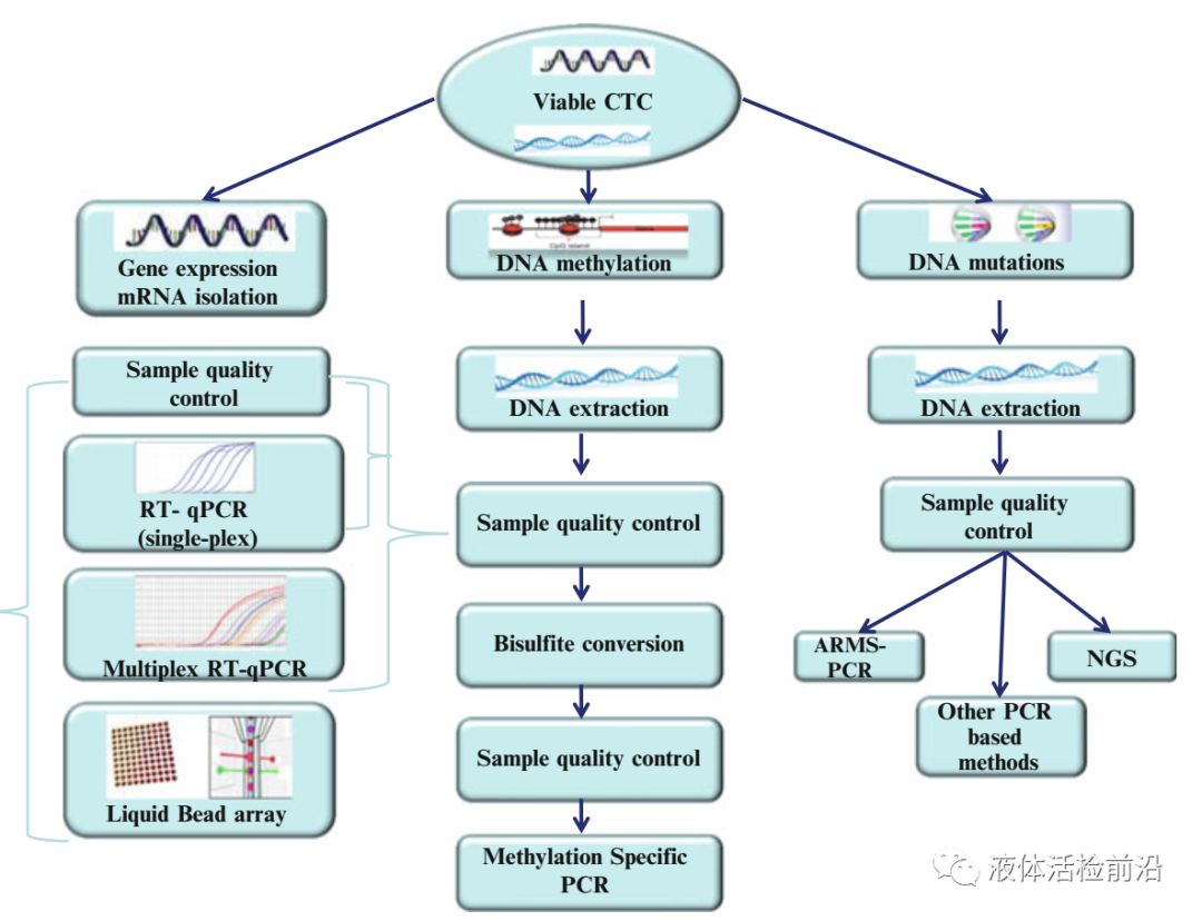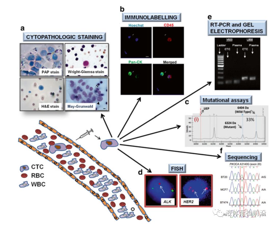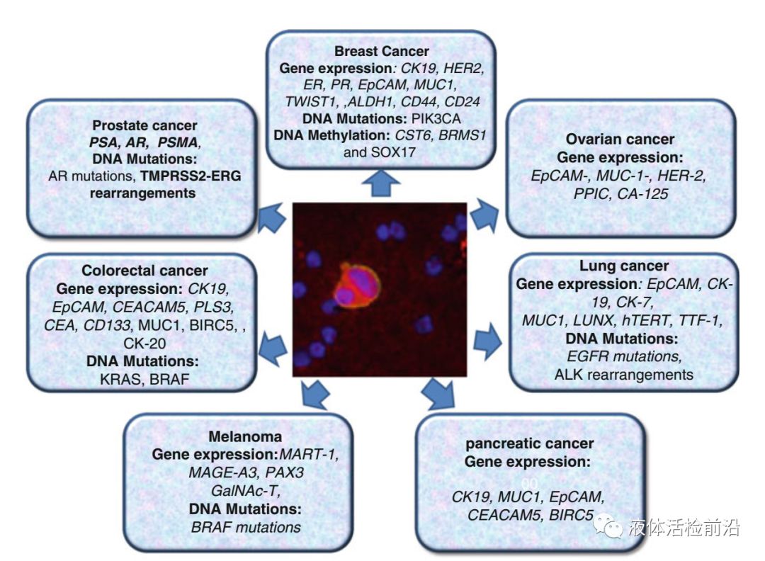 图7 CTC的体外操作 在第一部分第二章节中详细的介绍了CTC的捕获分离方法,总共介绍了几十种代表性的方法;另外还详细的介绍了各种方法在乳腺癌,结直肠癌,前列腺癌,肺癌,黑色素瘤,卵巢癌等各癌症中的临床应用。相信通过阅读这一章节会对CTC目前的检测技术有一个深入的了解,对每一种技术的优缺点以及临床应用的条件会有全新的认识。