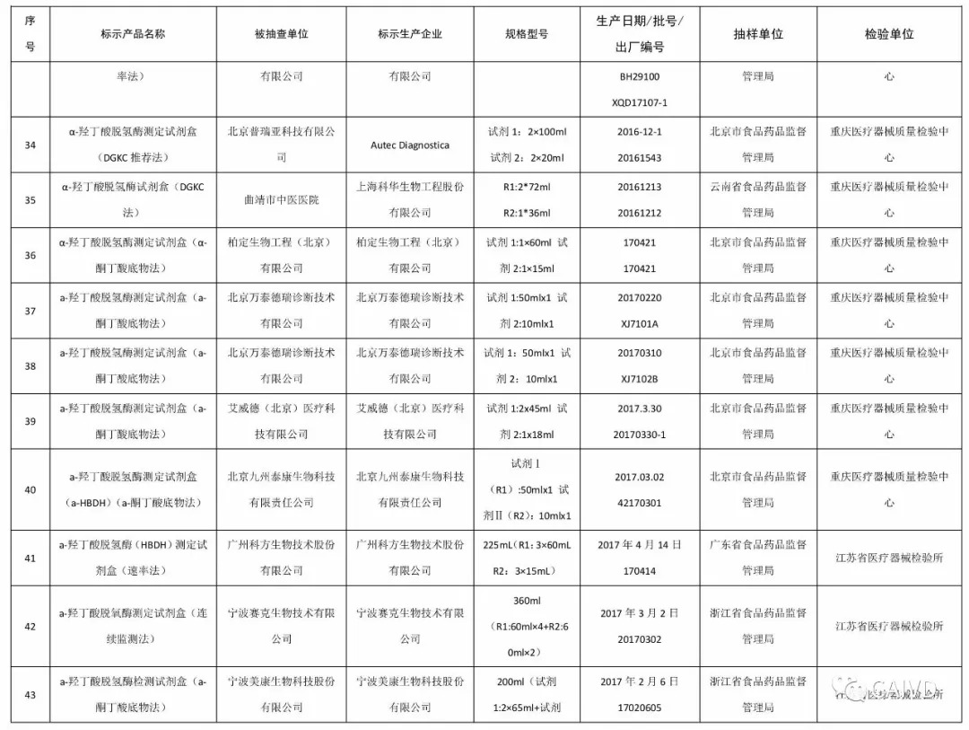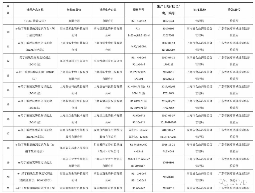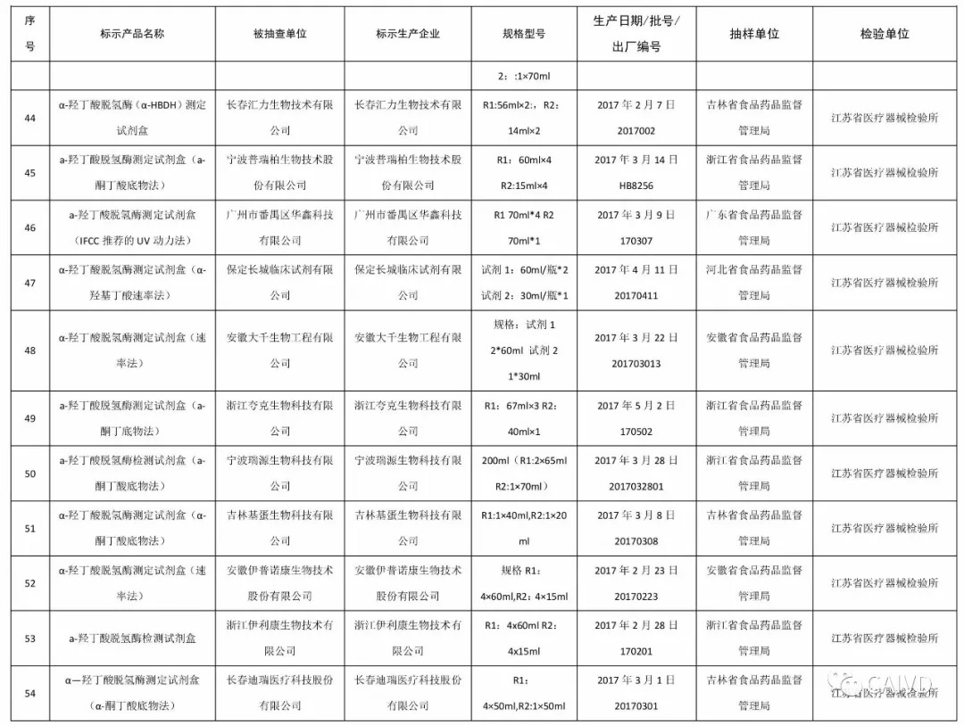国家食品药品监督管理总局为加强医疗器械质量监督管理,保障医疗器械产品使用安全有效,为此,总局组织对429家企业的15个品种831批(台)进行抽检,被抽检的项目全部符合标准规定,其中IVD企业共54家,分别是: