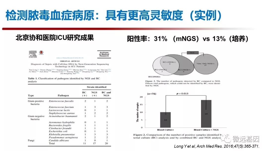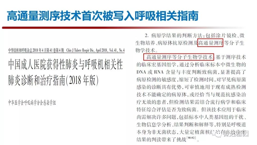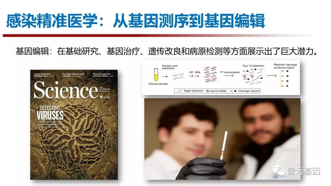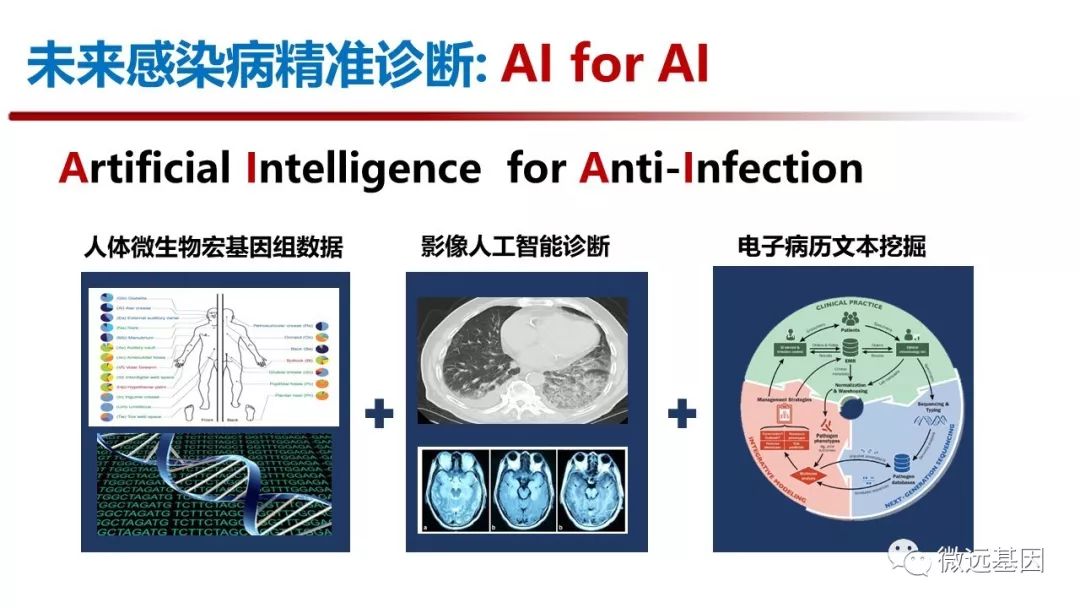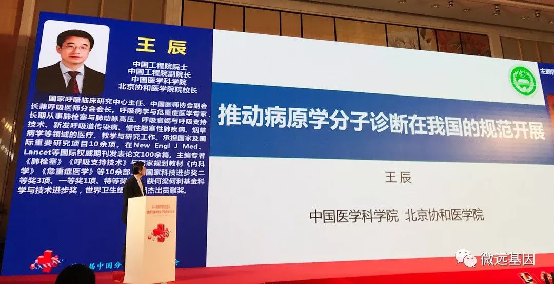 2018年11月9日-10日,中国工程院医药卫生学部主办的“第九届中国分子诊断技术大会”在广州召开。中国工程院副院长,中国医学科学院/北京协和医学院院校长王辰院士作《推动病原学分子诊断在我国的规范开展》的特邀报告。 王辰院士指出,在2016年全球死亡原因统计中,下呼吸道感染位居第四,导至全球约300万人死亡,腹泻病,结核病也占据前十位置。全球细菌耐药防控的严峻形势,需要以Population medicine的理念进行感染性疾病诊疗和抗菌药物管理。在临床诊疗方面,对于重症肺炎,发热待查,脓毒血症和脑膜炎等疑难危重感染的病原诊断能力严重不足。约有30-40%的病例不能明确感染病原体,造成严重的医疗,经济和社会负担。因此,迫切需要精准而规范的病原分子诊断方法。 在回顾了涂片,培养,免疫学检测等传统病原体检测方法之后,王辰院士重点阐述了分子诊断技术的发展与进入临床病原诊断的历程,分析了正在快速进入临床的分子POCT(多重病原体Panel检测)和基于高通量测序的病原宏基因组检测(mNGS)。根据具体临床需求,应当考虑不同层次分子诊断技术的复杂性与适用性。 王辰院士引用Nature Microbiology的综述,探讨了基于高通量测序的病原宏基因组检测(mNGS)在临床病原体检测中的应用价值。mNGS是一种不需要培养,直接广泛分析临床样本中微生物组的高通量测序方法,可以检测样本中存在的细菌,真菌,病毒和寄生虫等病原体。理论上,mNGS在病原体的诊断,耐药基因分析和新发病原体等方面具有优势,但在理论可行性和现实可行性之间需要深入而全面的临床评估。 王辰院士引用了2014年《新英格兰医学期刊》发表的案例,用mNGS 方法在48小时内检出钩端螺旋体,帮助临床精准诊断14岁联合免疫缺陷综合征男孩感染病原体。而2018年,梅奥诊所发表了一篇mNGS用于人工关节感染诊断大样本对比的文章,指出与传统培养方法相比,mNGS的特异性和敏感性有显著提高。 王辰院士特别引用了中国医学科学院北京协和医院的研究成果,包括神经内科关鸿志教授在2015年开展的中枢神经系统感染宏基因组学多中心研究的系列成果和重症医学科隆云教授的脓毒血症诊断研究。指出目前中国在mNGS方法学研发与临床数据积累方面具有一定的领先优势,需要进一步加大研究力度和深度。 王辰院士提出,鉴于目前mNGS的技术复杂性与经济成本,此方法学的临床适应征主要有三个方面:1. “难”:不明原因发热的疑难感染;2. “重”:急性危重感染,包括重症肺炎,脓毒血症,脑膜炎等;3.“特”:特殊感染人群,包括器官移植,HIV患者,免疫力缺陷患者等。 王辰院士提到,临床诊疗也要与时俱进。2018年4月,高通量测序技术首次被写入《中国成人医院获得性肺炎与呼吸机相关性肺炎诊断和治疗指南 (2018年版)》,与传统诊断方法结合,更加有力支持临床。 对于未来技术发展,王辰院士也谈到了从病原基因测序到基因编辑的发展方向。在2018年CRISPR-Cas12a/13a/14的最新发展,可以分别针对dsDNA,RNA,ssDNA序列进行目标性检测,有望成为更加特异,更加灵敏,快速简易的分子POCT诊断平台,在病原诊断方面有巨大的应用潜力。 在报告的最后,王辰院士提出AI for AI (Artificial Intelligence for Anti-Infection)的远景,需要结合病原基因组学,医学影像智能识别和电子病历文本挖掘等多维数据分析,才能够实现医学人工智能辅助的感染精准诊疗体系。感染性疾病精准医学必须依靠多学科协作(MDT)才能有力推进。 感染,曾是人类面临的致死率第一的疾病,抗生素的发明,使医生在面对先前束手无策的感染时,第一次获得了有效的治疗手段。然而抗生素的过度使用,导至了严重的耐药问题。王辰院士指出:“部分临床医生在出手抗生素的时候,对病原上的根据,从思想意识到真正执行上是远远不足的”。为了提高全社会合理使用抗生素的意识和水平,自2015年以来,每年11月的第三周,是世界卫生组织(WHO)确定的“世界提高抗生素认识周(World Antibiotic Awareness Week,WAAW)”。积极响应WHO号召,在2018年“世界提高抗生素认识周”之际,中国也推出了主题为“细菌耐药防控,中国在行动”的宣传片来帮助大家提高合理使用抗生素的意识和水平。 《遏制耐药,中国在行动》 遏制耐药,合理使用抗生素从感染病原精准检测开始,新的分子诊断技术(多重病原体Panel检测)和基于高通量测序的病原宏基因组检测(mNGS)将助力感染性疾病的精准诊治。 微远基因专注于基因科技与精准医疗,拥有两大核心技术平台:基因编辑技术(CRISPR)快速诊断平台与临床宏基因组测序(mNGS)平台。微远通过独立医学检验所或医院联合实验室的业务模式,为医院和患者提供临床检测服务。 |