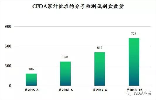 分子诊断是以分子生物学理论为基础,利用分子生物学的技术和方法研究人体内源性、外源性生物大分子的存在、结构及表达调控的变化,为疾病的预防、预测、诊断、治疗和转归提供信息和决策依据。 统计数据背景如下: 数据来源:国家药品监督管理局(NMPA) 细分领域:IVD-分子诊断-肿瘤癌症基因 统计方式:关键字查询检索 统计范围:截至2018.12.1 数据申明: 1. 数据由人工整理而成,难免存在遗漏疏忽 2. 该数据由公开数据整理而成,涉及相关企业,如有不妥,请联系 3. 请勿用于其他商业用途 截至2018年12月1日,已取得注册证的分子诊断的产品达到726个,年平均增长率40%。 |