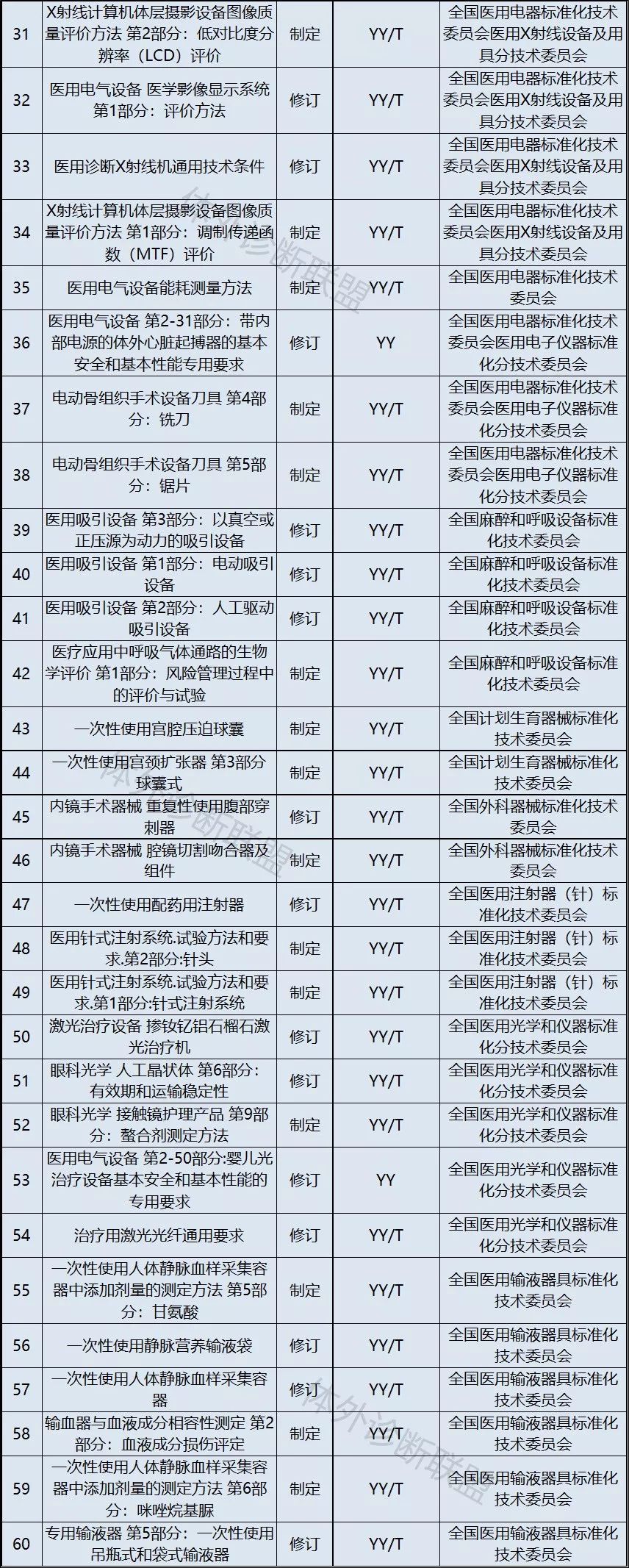 12月11日,国家药监局综合司发布了《关于2019年医疗器械行业标准制修订计划项目公示》,确定了94项医疗器械行业标准制修订计划项目。