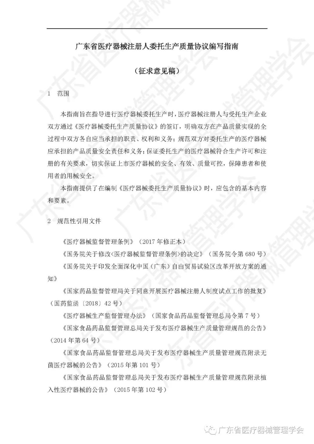 广东省内医疗器械企业: 为配合《广东省医疗器械注册人试点工作实施方案》更好地落地实施,我学会组织行业专家起草了相关配套推荐性文件《广东省医疗器械注册人委托生产质量协议编写指南》(以下简称指南),并于9月下旬面向行业大众公开征求意见。我学会根据意见反馈,组织行业专家论证,对《指南》进行了修订,现第二次公开征求意见。 请企业见到通知后就《指南》内容提出修改意见,修改意见以电子版形式报送至学会邮箱:GDMDMA@163.COM,征求意见截止日期2018年12月31日。 特此通知。 附件:广东省医疗器械注册人委托生产质量协议编写指南 广东省医疗器械管理学会 2018年12月14日 |