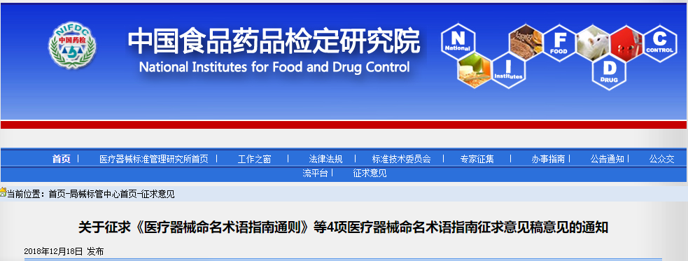 由国家药品监督管理局医疗器械标准管理中心、辽宁省医疗器械检验检测院、上海市医疗器械检测所和北京大学口腔医院口腔医疗器械检验中心牵头起草的《医疗器械命名术语指南通则》等4项医疗器械命名术语指南已形成征求意见稿及编制说明。现公开征求意见。