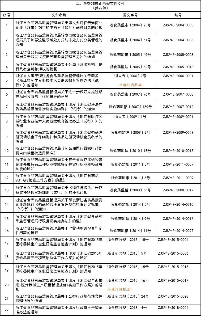根据《浙江省行政规范性文件管理办法》的规定,省药品监督管理局对2018年10月31日之前印发实施的涉及药监职责的行政规范性文件进行全面清理。现将《浙江省药品监督管理局行政规范性文件清理结果(征求意见稿)》公开发布,征求社会各界意见,如有修改意见和建议,请于2019年1月24日前,以邮件或传真的方式予以反馈。 联系人:政策法规处 阮颖潇 电话:88903366 传真:88903271 电子邮箱:zjsplf@163.com 附件:《浙江省药品监督管理局行政规范性文件清理结果(征求意见稿)》