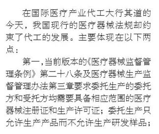 2月22日,中国政府网发布《国务院关于全面推进北京市服务也扩大开放综合试点工作方案的批复》,方案显示:开展医疗器械注册人制度试点,允许北京市医疗器械注册人委托京冀地区医疗器械生产医疗器械,助推“注册+生产”跨区产业链发展。 截止目前,医疗器械注册人制度试点已在上海、广东和天津展开,而且试点范围有进一步扩大之势。除北京外,江苏、浙江、山东、河北等医疗器械聚集地区也都在跃跃欲试并且尝试邻近省份联合试点。 ▍医械代工已成为全球趋势 全球经济一体化进程的不断推进,代工模式日益成为全球化企业开发产品、降低成本、拓展市场、获取利润的新途径 ▍委托生产法规限制创新 现行的委托生产法规不允许委托生产研发样品,导至具有良好市场前景的创新性医疗器械无法通过当前的委托快速上市。 ▍专业的人干专业的事 三种主要的代工模式即大集团内部代工、大品牌委托专业工厂代工、研发生产分离式代工都已有成功获证的案例。