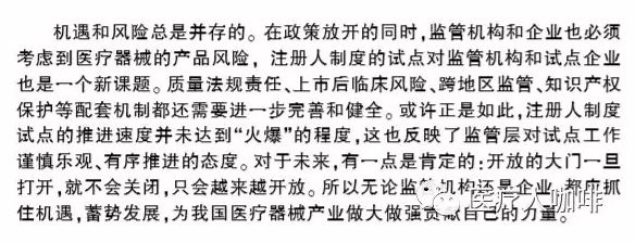 一旦试点工作完成,注册人制度在新条例下“转正”为上市许可持有人制度,创新器械、高端器械和进口替代产品有望迎来重大机遇期。 ▍结语 |