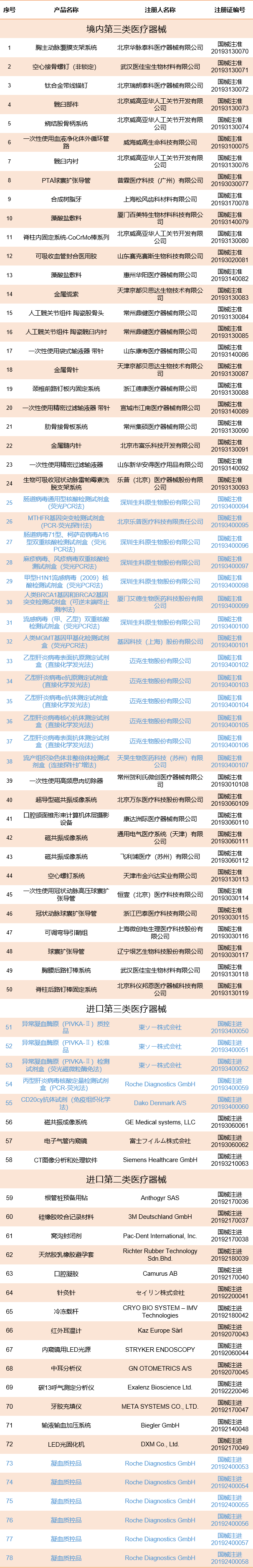 2019年2月,国家药品监督管理局共批准注册医疗器械产品78个。其中,境内第三类医疗器械产品50个,包含体外诊断产品14个;进口第三类医疗器械产品8个,包含体外诊断产品5个;进口第二类医疗器械产品20个,包含体外诊断产品6个。