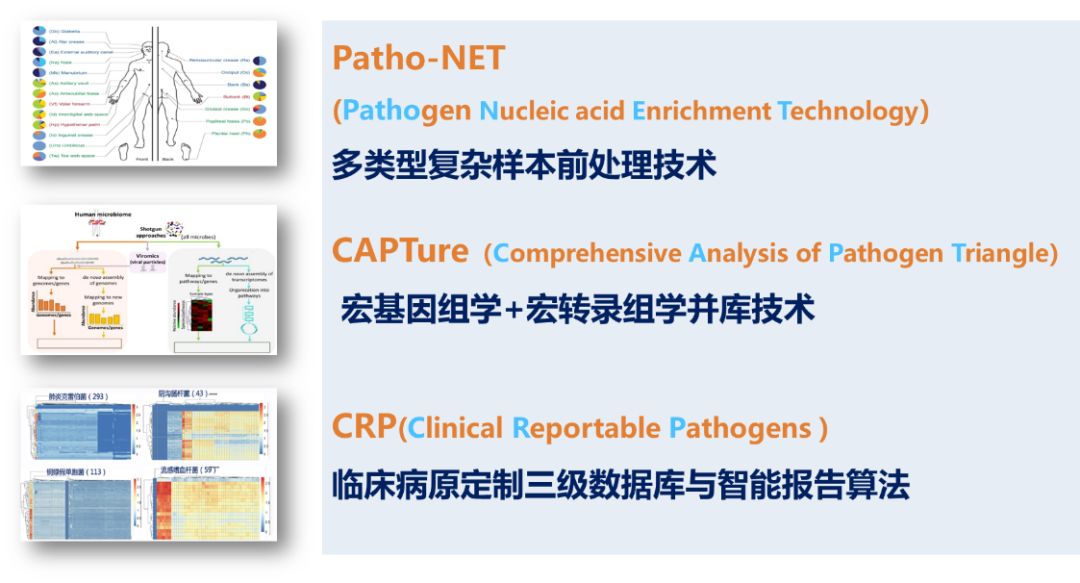 2. CAPTureComprehensive Analysis of Pathogen Triangle,宏基因组学+宏转录组学并库技术),从宿主、病原体和药物三个维度的出发,为临床感染精准诊疗提供更加丰富全面的参考信息。