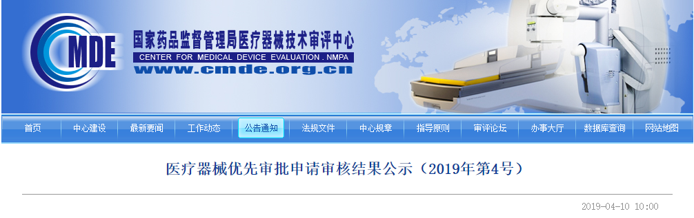 国家药品监督管理局 医疗器械技术审评中心 2019年4月10日
