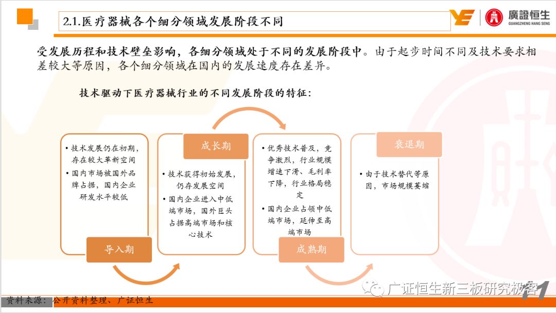 医疗器械各细分领域发展阶段不同,估值方法应视具体行业及企业特点调整。