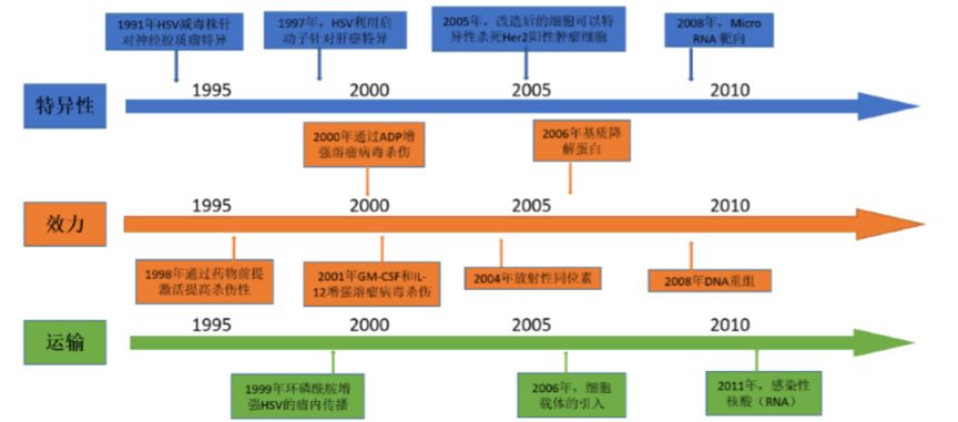 溶瘤病毒疗法是一种直接作用于肿瘤细胞的治疗方法,其原理是对天然存在的致病力较弱的病毒进行基因改造形成溶瘤病毒(Oncolytic virus,OV),利用癌细胞中畸变的信号通路(如抑癌基因失活或缺陷)选择性在肿瘤细胞中复制,导至肿瘤细胞裂解与死亡。 一、溶瘤病毒的作用机制 溶瘤病毒发挥对肿瘤细胞的杀伤作用主要通过以下途径:(1)直接裂解肿瘤细胞;(2)病毒感染的肿瘤细胞表达相关信号并释放大量细胞因子造成免疫细胞对肿瘤细胞浸润;(3)裂解的肿瘤细胞释放特异性抗原和免疫相关因子,诱发机体产生抗肿瘤免疫反应;(4)溶瘤病毒可以作为载体携带肿瘤抑制基因、促凋亡基因、抗血管生成基因、自杀基因和免疫调节基因,调控肿瘤免疫耐受微环境。 图1 溶瘤病毒参与肿瘤细胞杀伤的途径 二、历经百年发展,基因重组技术和肿瘤免疫联合治疗助溶瘤病毒重焕生机 溶瘤病毒的发展大致可分为野生病毒株发现应用阶段、基因改造病毒株研发阶段和基因插入及联合治疗增效阶段三个阶段。 1. 第一阶段:1904—1990年,野生病毒株发现应用阶段 溶瘤病毒在临床上的探索和尝试始于19世纪末20世纪初,与病毒几乎同时发现,期间陆续有关病毒感染的肿瘤患者的病情缓解或痊愈的零星报道,并诞生了溶瘤病毒概念及相关研究。 随后研究人员利用变异后的天然弱病毒株进行溶瘤治疗,水痘病毒、麻疹病毒等野生型病毒或减毒毒株短期内展现出一定的抗肿瘤效果,但天然溶瘤病毒对肿瘤细胞杀伤能力有限,易激活宿主免疫系统被清除掉,研究人员难以有效控制病毒病原性。80年代初有效的化疗药物的崛起后,溶瘤病毒研究步入低谷。 2. 第二阶段:1991—2010年,基因改造病毒株研发阶段 现代溶瘤病毒发展始于20世纪90年代,分子生物学和生物技术的发展使得重组病毒基因组改造技术逐渐成熟,溶瘤病毒在溶瘤效果、安全性及特异性方面都有了显著进步。1991年,人类首次对单纯疱疹病毒1型(HSV-1)进行胸苷激酶(Thymidine kinase , TK)敲除基因改造,癌症的溶瘤病毒治疗开始突飞猛进。1996年,基因改造的腺病毒ONYX-015进入I期临床试验。 图3 溶瘤病毒技术发展历程 图片来源:Nature、浙商证券 2003年,重组腺病毒-p53抗癌注射液(今又生)获得原CFDA批准,成为世界上首个获准上市的基因治疗癌症药物;2004年,非致病性的人肠道细胞病变孤儿病毒(enteric cytopathic human orphan virus)--RIGVIR,在拉脱维亚获批用于治疗黑色素瘤。2005年,重组人5型腺病毒注射液(安科瑞)在中国获批上市,但这些产品的临床疗效并未得到国际认可。 3. 第三阶段:2010年-至今,溶瘤病毒提效阶段 2015年10月,FDA批准携带人粒-巨噬细胞集落刺激因子(GM-CSF)的重组单纯疱疹病毒产品T-vec(Talimogenelaherparepvec, Imlygic)上市,2016年T-vec又分别在欧洲和加拿大获批上市,标志溶瘤病毒技术的成熟和对溶瘤病毒治疗癌症的正式认可。 2017年9月,《CELL》报道溶瘤病毒T-VEC与PD-1抗肿瘤药物Keytruda联合用药用于黑色素瘤,肿瘤缓解率高达62%,其中33%为完全缓解,掀起了溶瘤病毒免疫联合疗法研究的热潮。 三、溶瘤病毒以腺病毒、HSV-1(单纯疱疹病毒)和痘苗病毒临床应用较为广泛 目前在Clinical临床试验网站注册的溶瘤病毒主要有:腺病毒、柯萨奇病毒、HSV-1(单纯疱疹病毒)、麻疹病毒、新城疫病毒、呼肠孤病毒、水泡型口炎病毒、痘病毒、脊髓灰质炎病毒等,以腺病毒、单纯疱疹病毒和痘苗病毒临床应用最为广泛。其中由于腺病毒基因重组以及生产比较容易,因此临床开发广,试验开展最多,而HSV-1(单纯疱疹病毒-1)和痘苗病毒等因其基因组比较大,可加入任意的外来基因,在基因治疗上有很大优势,应用前景广阔。 表1 临床常用溶瘤病毒种类优缺比较 四、科研院所及其团队助力我国溶瘤病毒产业发展 在溶瘤病毒研发方面,我国曾走在世界前列。2005年,重组人5型腺病毒注射液(安科瑞)在我国上市,早于安进T-vec上市近10年之久,但因为种种原因没有在临床上得到广泛的应用。 目前我国涉足溶瘤病毒的企业约40家,并有多家企业进行了IND申报,相关代表公司有上海三维、武汉滨会、北京奥源和力、深圳复诺健、深圳亦诺微医药等。 表2 溶瘤病毒相关产品申报 在我国溶瘤病毒发展过程中,国内科研院所教授及其团队在当中发挥了不可忽视的作用: 1. 刘新桓院士及其团队 2001—2003年,刘新桓院士在国际上首次提出“癌症的靶向基因―病毒治疗”(Cancer Targeting Gene-Virotherapy, CTGVT),其原理是将抗癌基因加入到溶瘤病毒 (OV),其领衔的上海元宋生物技术有限公司成功开展了抗癌药物“重组人肿瘤靶向基因-病毒(ZD55-IL-24)注射液”的临床前研究。 2. 中山大学颜光美团队 中山大学颜光美教授在2014年10月6日在国际学术期刊PNAS上首次发表论文简述了M1病毒的由来及作用,此后颜教授团队进行了M1病毒安全性和有效性后续研究,并发现了M1病毒靶向杀伤癌细胞的标志物,目前溶瘤病毒M1已启动第三方安全评价,预计将于2019年进行人体临床试验。