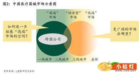 随着生活方式的转变和环境因素的影响,各种疾病困扰着国民。以恶性肿瘤为例,世界卫生组织预测中国肺癌新发病人数将从2010年的44万人增加到2030年的108万人。其他恶性肿瘤例如食道癌、肝癌、结直肠癌、乳腺癌等的每年新发病人数也将在20年内翻2到3倍。与此同时,根据中国人口信息研究中心的预测,中国60岁以上的老年人口将从2012年的1.4亿达到2020年的2.3亿,而在2040年更将达到4.3亿。统计数据也显示,中国每年人均医疗卫生支出(包括诊断、治疗、药物、器械等)的增长在过去几年均超过15%。根据预测,医疗支出仍将持续迅速增长,占GDP的比重将从2012年的5%达到2020年的7%。这些关键因素成为了未来医疗器械市场增长的原动力。 中国医疗器械市场在过去5年的年均复合增长达到了23%,从2007年的49亿美元达到2012年的140亿美元,而在未来5年中,整个中国医疗器械市场的年均增长速度预计将维持在20%左右,在2017年将达到350亿美元的水平。 同时,国家政策对进口高值医疗器械的市场发展有着巨大的影响。首先,中国医疗政策倾向于“低水平,广覆盖”,这导致国家医疗投入主要围绕在发展基本医疗、满足基本需求上。因此跨国厂商及其经销商应该考虑如何能在这样一个大的环境下争取更多资源。其次,发改委对高值植入类耗材价格加成的规定一旦实施,会直接影响到进口产品的盈利能力。对此,各个医疗器械的厂商正在积极应对这一情况。美国先进医疗器械协会(AdvaMed)也在和发改委沟通商讨如何能建立一个更有效、更合理的定价机制。第三,卫生部发布的省级集中采购规定,不但对高值产品产生价格压力,同时也增加了厂家的工作量。第四,自主创新是“十二五”规划的核心议题,国家进一步鼓励本土企业加强研发,增加竞争力,同时也引导跨国企业在中国建立研发和生产能力。当然,医保支付方式改革,比如“单病种付费”、“诊断相关疾病分组”等正在积极试点和探讨中,也将对医生和病人的决策产生深远影响。 目前,几乎所有的跨国公司的产品和战略重点都是一二线城市中的三级医院,而对除这些医院以外的二三线城市或二级医院涉足不深。在前述这样的大环境下,传统上活跃在大城市、大医院的跨国医疗器械公司要继续维持收入的高速增长,就不可避免地要把他们的视线向下延伸,开始关注更广阔的中国市场。相对于前者的“高端”市场,我们把后者称为“经济型”市场。 许多跨国企业在过去几年都通过对中国企业的并购来进一步获得中国市场的机会:例如史赛克(Styker)收购骨科产品生产商创生控股,美敦力(Medtronic)收购康辉,柏盛国际(Biosensors)收购吉威(JWMedical),捷迈(Zimmer)收购蒙太因(Montagne)等。在这些并购案例中,这些跨国公司的高层在评价他们的动机时,往往把打入中国的“经济型”市场作为他们最重要的目标之一。下面我们就探讨一下如何去认识和应对这样一个市场。 引领“高端”市场,迈向“经济型”市场 “高端”和“经济型”市场——这是目前跨国公司的高层在思考中国市场战略的一个重要主题(图2)。这些公司目前为止大部分都集中在“高端”市场竞争,即一、二线城市的三级医院,只有一小部分业务能渗透到“经济型”市场,即二级医院以及三线城市的各级医院。那么,对跨国医疗器械公司而言,应该如何看待“经济型”市场呢? 要关注“经济型”市场并不是说高端市场已经饱和。“高端”市场在未来相当一段时间内仍将是跨国公司高端医疗产品的主战场。我们认为,“高端”市场有三大驱动力将在未来数年中持续推动这一市场的增长。 第一,城市化的持续推进、疾病发病率的不断提高、居民可支配收入的增长和病人意识和治疗率的提高等都在不断推动就诊病人数量的增长。第二,市场和政策因素也将继续对整个市场的增长起到积极作用。这尤其体现在人均医疗保健支出每年的持续增加,政府对医院和卫生基础设施投入的加强,以及医生能力也在不断提升。第三,市场参与者也起到了不可小觑的关键作用。跨国公司正在努力通过培训和推广增加其产品的知晓率、使用率,并最终拉动“高端”市场持续增长。 在考虑“经济型”市场的时候,有一个特点不容忽视:虽然这部分市场的医院数量庞大,但这些医院的平均规模偏小。根据L.E.K.收集的数据(见图3),一线城市的三级医院虽然只有约150家,但是年均住院病人手术量都要超过5万例。即使是那些在三线城市的三级医院(总数不到1000家),其年均住院病人手术量也可达到1万例。而这个数字在绝大多数一线城市的二级医院只能达到7-8千例,而在二三线城市的二级医院只能达到2-3千例——虽然二级医院和县级医院数量总共有近8千家之多。因此,不能简单地用医院数量这个指标来衡量市场规模。同时,由于这些“经济性”市场的客户是如此之分散,要达到相同产出所需要的投入也不可同日而语。 除医院数量及规模以外,“高端”市场和“经济型”市场还存在诸多重要差异。企业在“经济型”市场上运作的方式(比如销售模式、产品、价格等)会和在“高端”市场非常不同,不能简单的复制在“高端”市场的成功策略。这些主要的差异包括: 科室设置:“高端”市场医院的科室设置高度专业化。以外科为例,一般会有6-9个专业外科,比如血管外科、神经外科、肝胆外科、心胸外科等,分工明细。而“经济