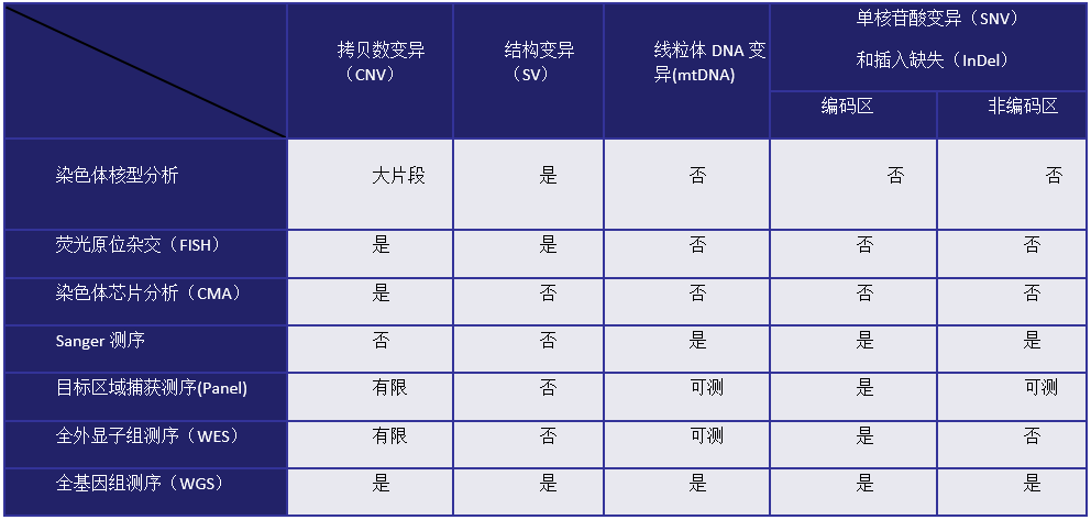 有限:指技术固有局限,对CNV识别不全。 可测:指某些特定情况可测,取决于探针设计。