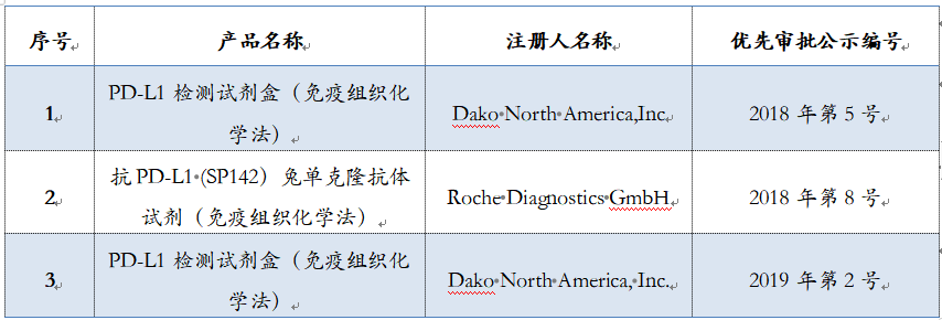 ▲2019年8月30日进口批件发布通知(来源:NMPA) 2019年8月30日,NMPA对外发布准产批件通知。通知显示:Dako North America(代理人:安捷伦科技(中国)有限公司)的“PD-L1检测试剂盒(免疫组织化学法)”正式获批上市,值得一提的是此款产品系在中国批准上市的首个PD-L1检测试剂盒。 PD-L1检测是目前筛选获益患者金标准 大量研究表明,肿瘤组织样本中PD-L1表达水平越高,则意味着患者更可能从PD-1/PD-L1抑制剂治疗中获益。肿瘤组织PD-L1表达水平评估是目前临床研究、验证和认可度最广泛的PD-1/PD-L1抑制剂疗效预测标志物。而免疫组化方法学是目前临床诊断级别评估肿瘤组织PD-L1表达水平的唯一方法学。目前FDA获批具有代表性的4种PD-1/PD-L1单抗(nivolumab、pembrolizumab、atezolizumab和durvalumab)都有相对应的伴随诊断联合使用,在临床诊疗实践中,到底是应该先选择PD-L1检测方法还是先选择治疗药物?不如,先来看看检测适应症与关联药物的比较: ▲表1:FDA/CE IVD已获批的4种PD-L1检测汇总(图片取自肿瘤资讯) 从国际上已报道的研究来看,针对以上4种PD-L1表达检测,2017年发布在《Clinical Cancer Research》杂志上的一项研究显示,SP263和22C3、28-8具有较好的一致性,在PD-L1肿瘤细胞膜染色不同阈值(1%、10%、25%和50%)的比较上,三种方法的总体一致率>90%。由国际肺癌研究协会(IASLC)发起的Blue Print 1和Blue Print 2研究显示出相似的结果。相比之下, SP142检测肿瘤细胞PD-L1表达需要更高的阈值,但在免疫细胞的检测上具有更好的敏感性,从最新的研究更新来看,SP142在需要或仅需要评估免疫细胞PD-L1表达水平的适应症上具有显著优势。值得注意的是,VENTANA PD-L1(SP263)可以同时检测细胞膜和细胞浆中的PD-L1表达,欧盟体外诊断医疗器械(CE IVD)认证批准可同时指导nivolumab、pembrolizumab和durvalumab治疗是目前国际上关联药物最多的检测。 ▲图1:非小细胞肺癌(NSCLC)组织HE染色 (20X) 及4种FDA/CE IVD认证获批PD-L1检测染色图示(20X). Hirsch, Fred R., et al. Journal of Thoracic Oncology12.2 (2017): 208-222.(图片取自肿瘤资讯) 2018年是中国免疫治疗的元年,截止目前,先后5款PD-1单抗类药物先后获批上市(默沙东、BMS、君实、信达、恒瑞医药),但5种PD-1/PD-L1抑制剂临床研究中应用的检测抗体均未在我国获得上市批准,这对于临床医生在制定治疗决策时,如何评估患者从PD-1/PD-L1单抗类药物治疗方案获益情况提出了挑战。目前,克隆号为SP263、SP142和22C3的抗体试剂在我国已进入注册申请过程,其中部分申报产品进入优先审查程序。 ▲进入优先审评阶段的PD-L1检测试剂盒(整理:Medialliance) 小结 |