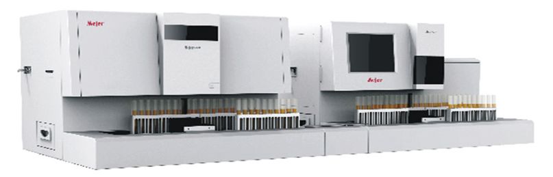 深圳市美侨医疗科技有限公司 + Merjer-700I与Mejer-1600 通过连桥盒与数据线连接后组成尿液分析系统流水线 产品亮点: 组合成的流水线不仅仅是两台单独运行的仪器,并具有以下优势: