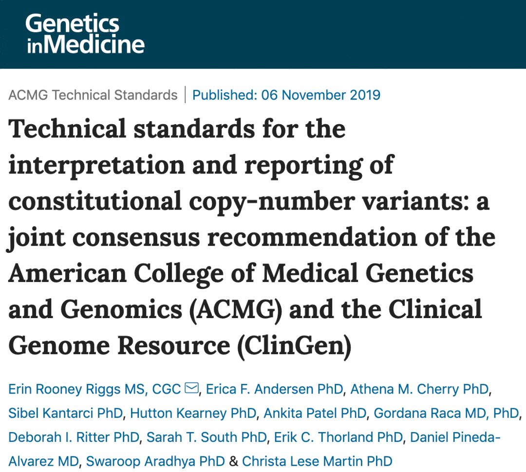 美国医学遗传学与基因组学学会 (ACMG) 和美国国立卫生研究院 (NIH) 资助的临床基因组资源中心 (ClinGen) 于2019年11月6日在Genetics in Medicine杂志联合发布适用于产前/产后的染色体拷贝数变异 (CNV) 解读和报告的技术标准2.0,该标准是2011年ACMG推出CNV解读指南的一次升级,本文主要从解读和报告两方面简单介绍本次升级要点,并对CNV和单基因遗传病变异解读的一致性进行了简要摘录。 发表时间: ACMG Technical Standards Published: 06 November 2019 权威性: ACMG和ClinGen达成的共识建议 临床适应症: 神经发育障碍和/或多种先天性异常患者,以及超声异常胎儿等。(染色体拷贝数变异是发育迟缓、智力障碍、多种先天性异常和胎儿超声异常的常见病因) 方法及结果: 通过各自临床实验室的CNV及其分类情况讨论确定致病性证据项设置及各自权重,开发了基于半定量的评分系统,通过实际病例数据进行验证和参数调整,对打分系统进行迭代升级,最后用114个CNV(58个缺失,56个重复)进行环境/人员变量的外部测试(不同环境的人员操作,使用评分体系/不使用评分体系,分析评估一致性)。使用评分系统与不使用评分系统相比,致病性结果的一致性有所提升。 结论: 建议各实验室将该标准作为统一的参考,不仅可以提高实验室对CNV结果分析的一致性,也能让CNV的分析变得更规范和透明。 局限性说明: 不适用于肿瘤CNV的分析; 是否遵守该标准是自愿的; 并不确保每一个分析结果都符合临床,也不是所有的CNV都适用 (任何一种计算模型都不可能适用所有的应用场景)。 证据项: 覆盖区域是否包含功能元件、与剂量敏感性基因/区域的重叠范围、覆盖基因计数、文献报道/公共数据库/实验室数据库支持证据、患者遗传模式和家族史评估。 CNV解读要点: 文末点击“阅读原文”可前往ClinGen CNV致病性解读计算器。 致病性解读的一致性: ▲ 不同的检测技术和机构:基于NGS平台的CNV分析已经在全基因组、全外显子组及基因panel的测序中被广泛应用,此外,不同的检测技术也可能检测出不同片段大小的CNV,越来越多的新发/罕见变异被检出,因此从染色体水平的缺失重复到基因外显子水平的缺失重复,也迫切需要一致性的致病性判断逻辑。 ▲ 表型正常和患者人群:跟单基因病的变异解读保持一致,让致病性判断逻辑同时适用表型正常人群和临床患者人群。此外,数据库和文献的证据分类更加精细,也更强调覆盖区域/重要基因与文献中患者表型的一致性,而受检者本人的临床表型/家族遗传史等证据分值则有所降低 (受检者本人的表型重要性有所下降)。 ▲ 染色体与单基因病解读规则:本次CNV评分系统中涉及的证据类别、专业术语及变异分类,也与单基因病保持一致。 对于证据强度,虽然基于贝叶斯框架对各证据项强度的具体分值并未通过统计学计算得出,但普遍认为0.90分或更高的证据被认为是“非常强”,获得0.45分的证据被认为是“强”,0.30分被认为是“中等”,0.15分或更低分被认为是“辅助”证据。 对于致病性判断,从2011年的ACMG的CNV解读指南的致病、意义未明、良性,调整为与单基因病的变异解读类似的5档:分值≥0.99分是致病 (P)、0.9≦分值≦0.98是可能致病 (LP)、分值≦-0.99是良性 (B)、-0.98≦分值≦-0.90是可能良性 (LB)、其他分值都是意义未明 (VUS)。 CNV报告标准: ① 报告内容应该包含CNV的大小、分类类型、分类标准。良性/疑似良性的CNV是否提示在报告中,也需在检测中加以说明。 ② CNV命名应该遵守国际人类细胞基因组命名系统 (ISCN) 或人类基因组变异学会 (HGVS) 推荐的命名法。 ③ 报告中应尽量说明CNV所涉及的基因,对于影响较大的CNV,可以列举被公认的综合征疾病和/或临床相关的基因名称,不确定影响大小的CNV,建议尽量说明该区段所有进行过功能验证/鉴定的基因名称。如果报告中不能列出所有影响基因,建议提供基因总数和可能与临床相关的基因名称信息。 ④ 报告中的CNV变异,应该明确说明变异的分类及相关支持证据。 ⑤ 涉及ACMG推荐报道基因的意外发现CNV,建议在充分知情同意基础上才进行告知。 ⑥ 检出包含常染色体隐性遗传或X连锁隐性遗传疾病相关基因的CNV区段,建议实验室有针对性在补充报告中报道,也可以选择在知情同意后不报道。涉及以下3种情况的CNV携带建议进行报道: a.功能缺失是明确的致病机制,检出相关基因的CNV缺失携带可以提示受检者或其亲属进行遗传咨询和生育指导,特别是对于发病率高及/或便于筛查的疾病基因更需要进行报道。 b.CNV包含的基因,其疾病症状与受检者临床主诉比较相符。该CNV提示给受检者后,可以指导医疗机构进行相关基因其他变异类型的补充检测。 c.女性受检者中检出的X连锁隐性遗传相关基因的CNV,可以提示受检者进行遗传咨询和生育指导。此外,鉴于X连锁隐性遗传疾病的女性携带者可能会有轻微临床症状,提示给受检者也是有利于可能涉及的疾病管理和治疗。 参考文献: *CNV的2011年变异解读指南:Kearney H M, Thorland E C, Brown K K, et al. American College of Medical Genetics standards and guidelines for interpretation and reporting of postnatal constitutional copy number variants[J]. Genetics in Medicine, 2011, 13(7): 680. *单基因病的变异解读指南:Richards S, Aziz N, Bale S, et al. Standards and guidelines for the interpretation of sequence variants: a joint consensus recommendation of the American College of Medical Genetics and Genomic
