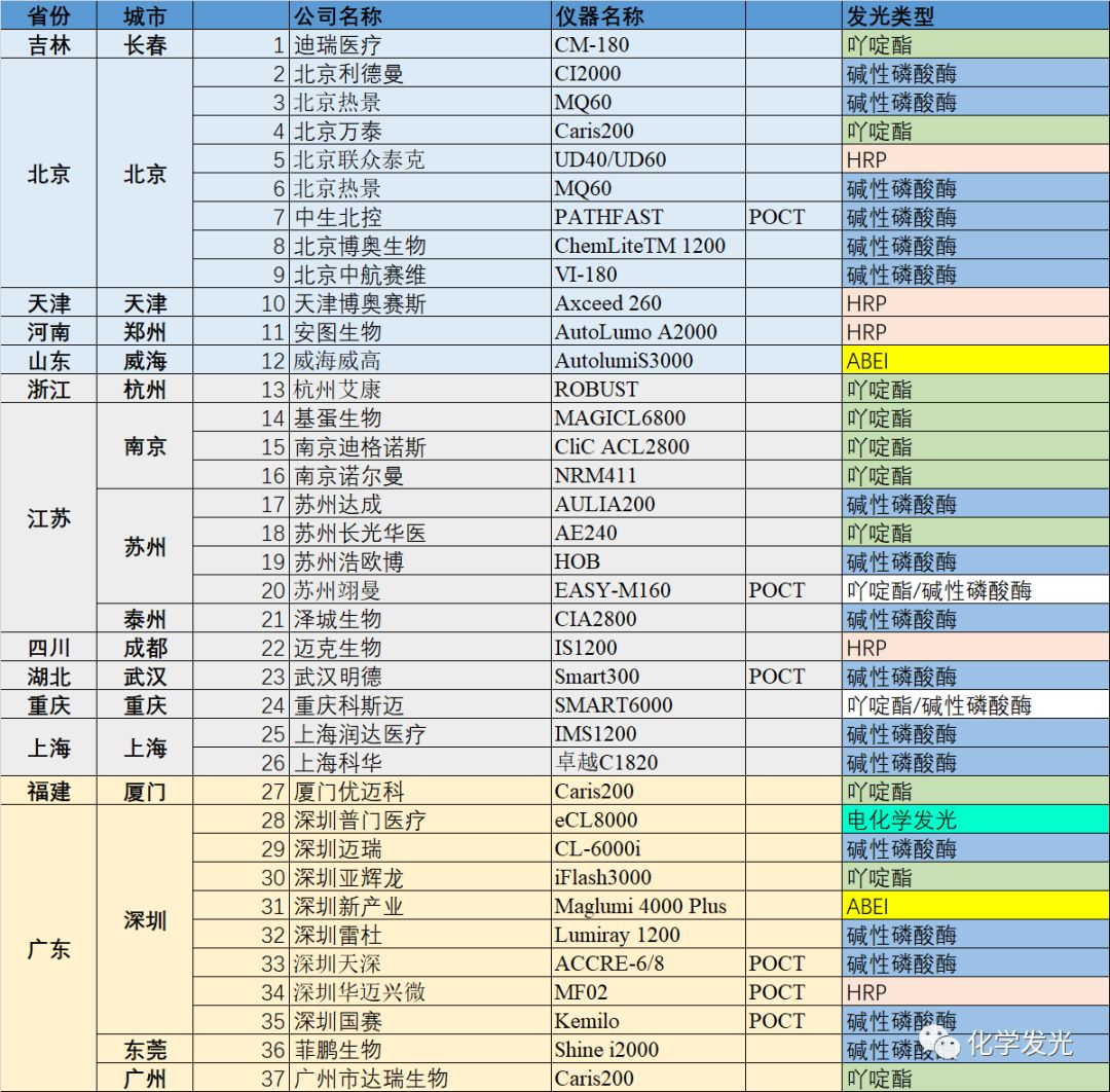 本次一共统计了37家具有磁微粒化学发光免疫检测技术的厂家。