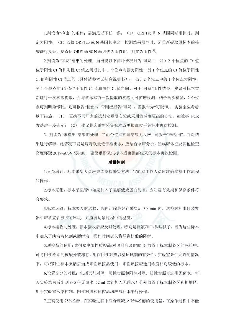 突发新型冠状病毒(2019 novel coronavirus,2019-nCoV)肺炎疫情以来,感染病例快速上升。随着疫情的发展和防控力度加大,全国各地乃至境外均有病例报道,及时对急重症及疑似患者进行诊断需要快速有效的方法,病毒核酸检测可为诊断提供直接证据。核酸检测过程中因对病原体的传染途径和致病力尚未完全明确,工作人员在核酸检测过程中存在较大的感染风险。此外,因为 2019-nCoV 基因结构与一般 RNA 差别较大,因此检验流程、检验质量和生物安全均需要有一定的指导。本共识在参阅国家卫生健康委员会相关文件、查阅文献、咨询重疫区相关专家的基础上进行编写,以对实验室检测工作提出有指导性的建议,本共识适用于从事 2019-nCoV 核酸检测(如RT-PCR方法)的所有实验室。 参考资料: |
