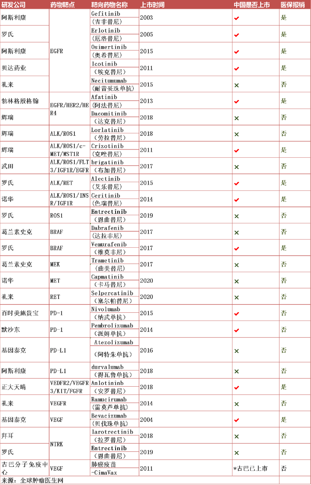 癌症已上市的靶向及免疫治疗方案大全更新了