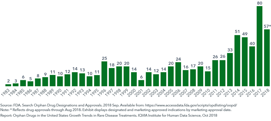由于每种罕见病的患者数量少且信息匮乏,使得罕见病药物的开发困难重重——研发成本高昂、市场空间狭小、投资回报率低但风险高,因此乏人问津。罕见病药物有一个令人闻之心酸的别名——“孤儿药”。 为激励企业投入孤儿药研发,美国在1983年颁布《孤儿药法案》,出台一系列激励政策,包括对孤儿药给予优先审批、市场独占权、税收减免、研发支持等。 FDA每年批准上市的孤儿药数量(1983-2018.8) 图 | www.iqvia.com 截止2018年8月,美国食品药品管理局(FDA)已批准上市503种孤儿药,针对731种罕见病适应症,约占所有罕见病的10%。 03 不罕见的罕见病人 全球每时每刻有多少患者正在直面罕见病的挑战呢? 猜猜看,再点击下方空白处查看答案。 全球罕见病患者的总数是惊人的,超过了全部癌症与艾滋病患者的总和。假如全球的罕见病患者组成一个国家,那将会是世界第三人口大国,仅次于中国与印度,与美国不相上下。 这同时意味着,我们身边每17-29个人中,就有 1 位正被某一种罕见病折磨着。 不幸的是,这些患者中有一半是儿童。更不幸的是,这些孩子中有 30% 无法活着庆祝自己的 5 岁生日。 在全球各地,罕见病的诊疗可能都是人类目前所面临的最大的医学挑战。 下部 聚焦中国 04 国家定义篇 2018年5月,国家卫健委等五部委联合发布《第一批罕见病目录》,共收录121种(类)罕见病 : ▲ 向上滑动阅读更多 |