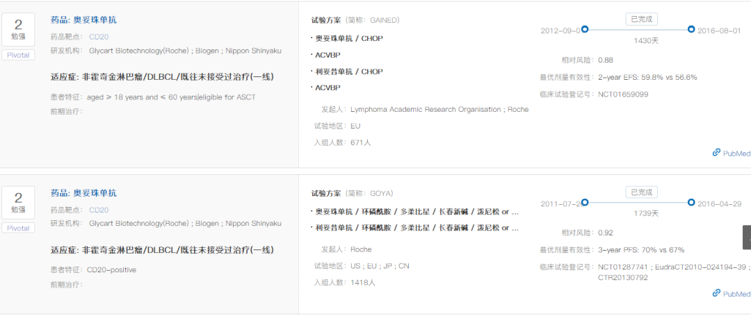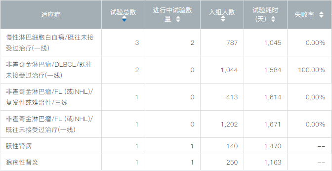 根据NextClinTrial数据库,奥妥珠单抗针对慢性淋巴细胞白血病、狼疮性肾炎、膜性肾病的核心临床试验尚在进行之中。
