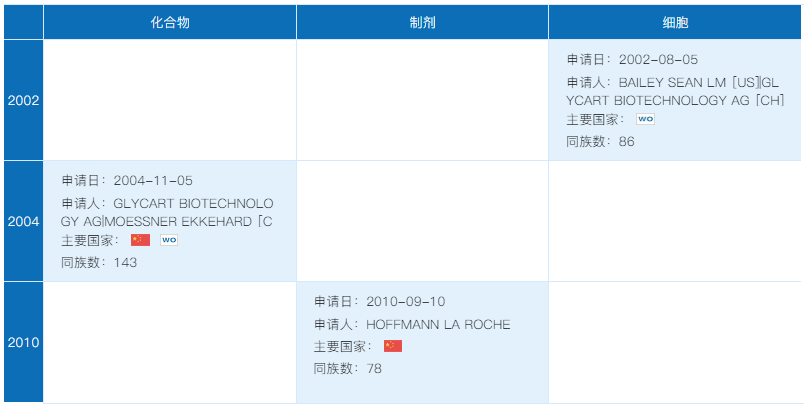 罗氏基于该专利在中国提交了3件分案申请、专利类型均为序列专利,其中两件获得了授权。该专利在美国、日本、欧洲、WIPO等38个国家或组织拥有113件同族专利。
