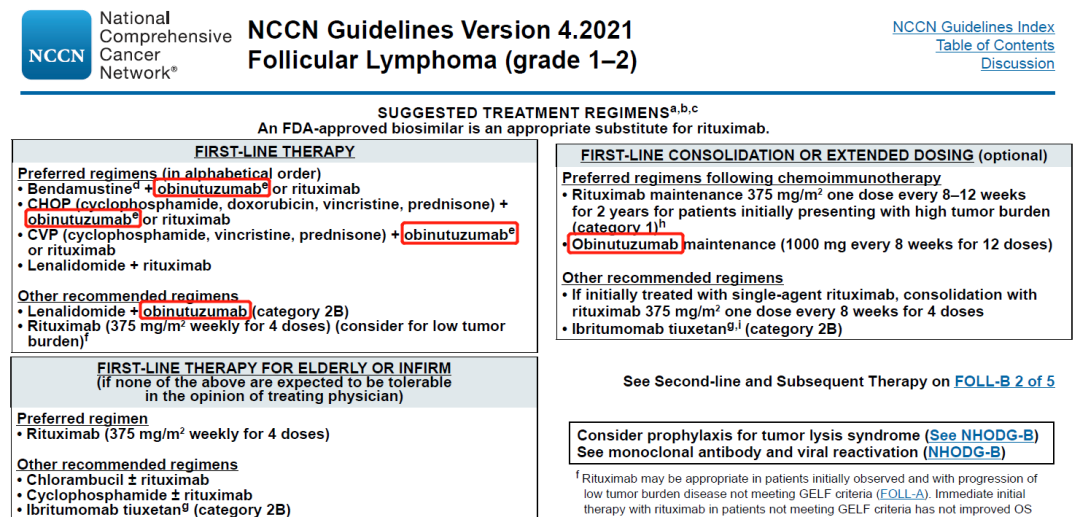 NCCN诊疗指南:B细胞淋巴瘤V4.2021(滤泡性淋巴瘤):