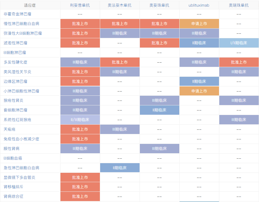 抗CD20适应症研发布局