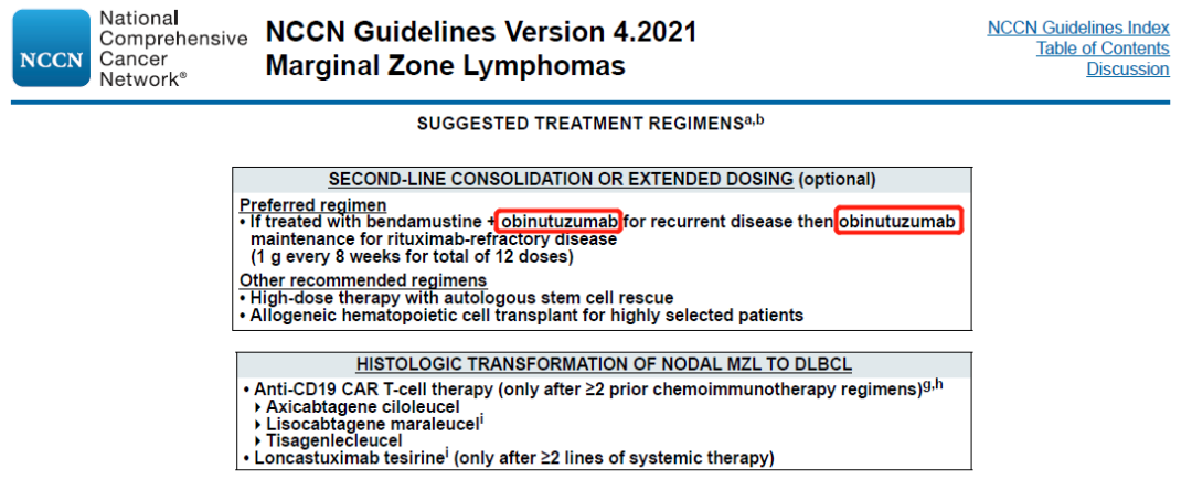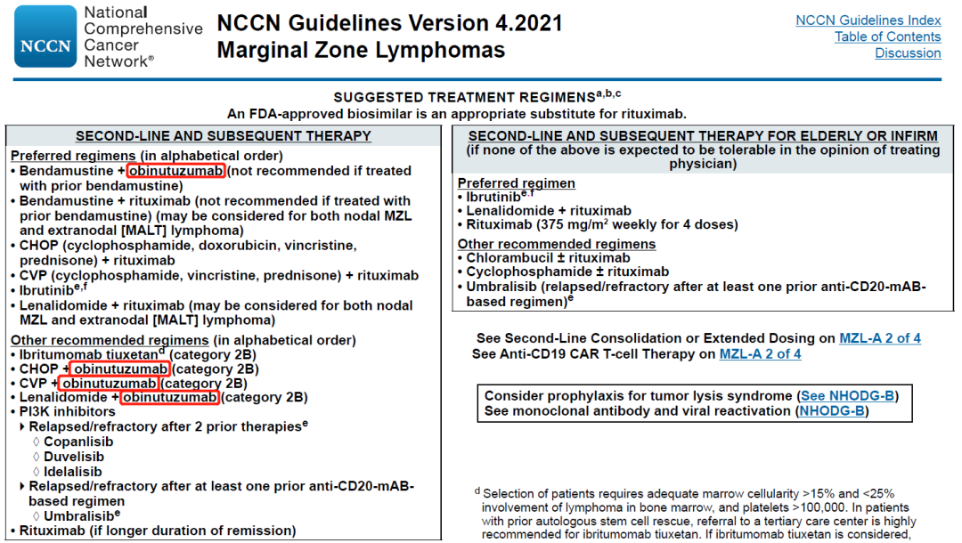 NCCN诊疗指南:B细胞淋巴瘤V4.2021(边缘区淋巴瘤):