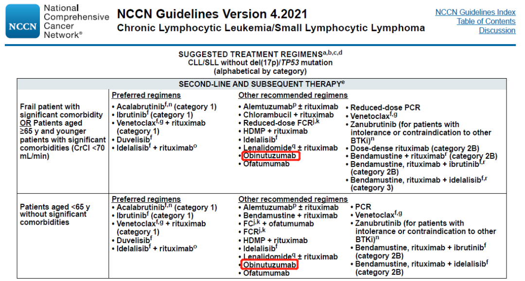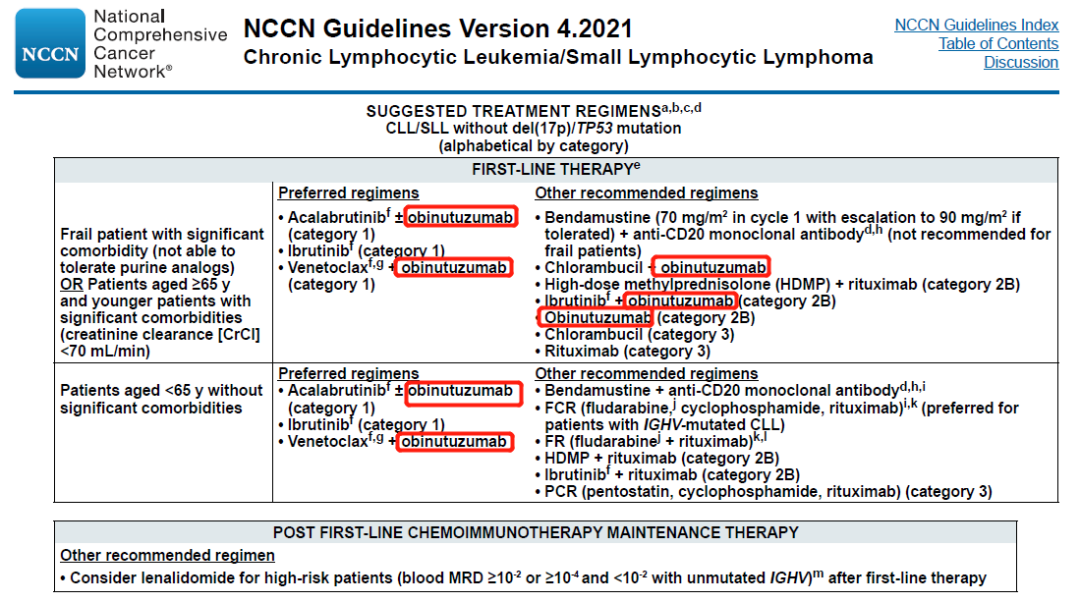 NCCN诊疗指南:慢性淋巴细胞白血病V4.2021