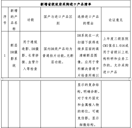 ▲四川《目前尚无国内产品的医疗卫生设备清单专家论证意见》截图(部分)