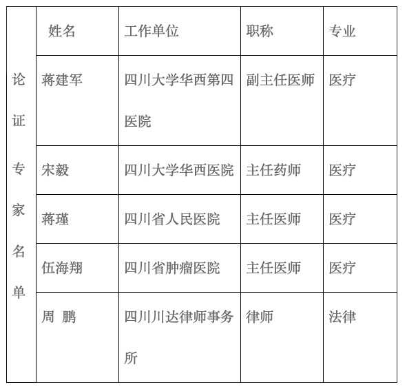 从公示信息可以看到,此次是四川省财政厅会同医疗卫生行业主管部门统一组织专家团队进行论证,专家团总共由5位成员组成,分别是:四川大学华西第四医院副主任医师蒋建军、四川大学华西医院主任药师宋毅、四川省人民医院主任医师蒋瑾、四川省肿瘤医院主任医师伍海翔和四川川达律师事务所律师周鹏。从这5位专家的身份可以看出,有2名主任医师、1名副主任医师、1名主任药师、1名律师组成,专家在各自领域都颇有建树,但跟医疗器械的关联度很低。与此同时,“5人专家团”仅仅达到了国家要求的论证专家组的最低人数。所以其人员配置及其工作履历和经验是否能完全覆盖23类医疗设备,让人质疑就不难理解了。