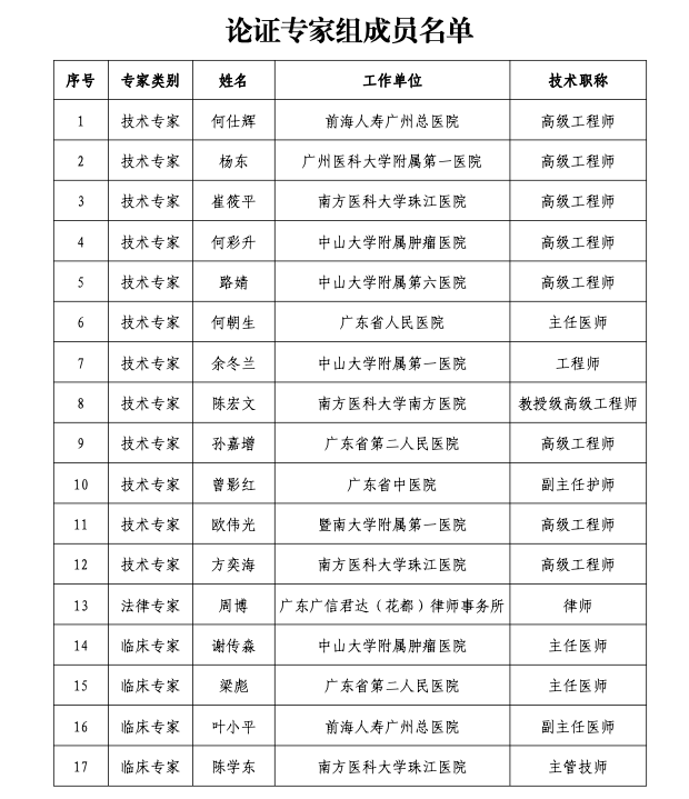 反观同样公示了论证清单的广东省,其专家组成员多达17位,包括12位技术专家,4名临床专家和1名律师。不仅在人数上是四川的3倍之多,在人员组成上,还配置了在医疗器械评估上更有发言权的技术专家,且有12位。其中不乏南方医科大学南方医院教授级高级工程师陈宏文这样的业内大拿,研究方向也是医疗器械的质量控制管理