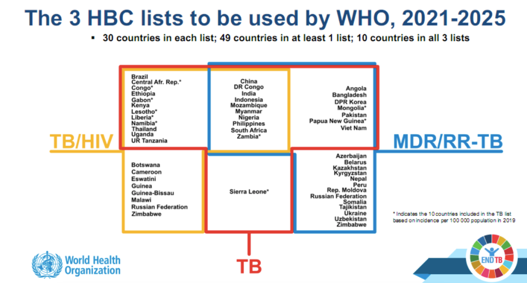 世界卫生组织 (WHO) 日前发布了最新的全球结核病 (TB)、艾滋病毒感染相关结核病和耐多药/耐利福平结核病 (MDR/RR-TB) 高负担国家名单。新名单适用于 2021-2025 年,取代了之前2016-2020年期间使用的名单。 新的清单为最需要在结核病、艾滋病毒相关结核病和耐药结核病方面采取全球行动以实现世卫组织终止结核病战略、2018 年联合国 (UN)大会结核病防治问题高级别会议达成的政治宣言、以及联合国可持续发展目标 (SDG)的实现的国家提供了重点关切,同时有助于在患者绝对数量或严重程度方面负担最高的国家建立和维持国家政治承诺和资金资源、以及促进对这些明确定义的国家的防治进展开展全球监测。 新名单的定义与2016-2020 年名单所用标准相同,并结合最新的结核病、艾滋病毒相关结核病和利福平耐药结核病发病率估计(2019 年)(详见世卫组织《2020 年全球结核病报告》)。 这3个列表,每一个30个国家,都以相同的方式定义: ●2019年新病例估计绝对数排名前20的国家; ●发病率(2019 年每 10 万人口中新增病例)方面负担重、虽未进前 20 名、但在病例绝对数方面达到最低阈值(每年10 000 新病例、以及每年 1000 例 HIV 相关结核病和耐利福平结核病新病例)的10个国家。 每个列表占估计全球发病率的86-90%。 与2016-2020 年名单相比,主要变化有: ●30个结核病高负担国家:柬埔寨、俄罗斯联邦和津巴布韦退出,加蓬、蒙古和乌干达新加入。 ●30个结核病/艾滋病高负担国家:安哥拉、乍得、加纳和巴布亚新几内亚退出;加蓬、几内亚、菲律宾和俄罗斯联邦新加入。 ●30个耐利福平结核病高负担国家:埃塞俄比亚、肯尼亚和泰国退出;蒙古、尼泊尔和赞比亚新加入。 世卫组织与柬埔寨、俄罗斯联邦和津巴布韦的卫生部长进行了正式沟通,通报了他们国家从30个结核病高负担国家名单中的过渡,肯定近年来他们在减轻结核病负担方面取得的成功。2015 - 2019 年期间,这3个国家的发病率(每年每 10 万人)分别下降了 22%、25% 和 18%。 世卫组织还在建立“全球结核病观察名单”,包括从全球 30 个结核病高负担国家名单中退出的3个国家,它们仍然是世卫组织继续关注和支持的重点。未来可能会考虑将其他国家纳入此观察名单,例如、基于 COVID-19 大流行对结核病服务和疾病负担影响的证据。至关重要的是,观察名单上的国家以及中、低发病率的国家,都需要继续朝着 2030 年目标前进,以达到预终止和终止结核病流行的目标。 在最终确定更新的全球高负担国家名单之前,考虑了 COVID-19 大流行的背景,特别是评估了大流行对结核病发病率的影响是否可能会影响每个列表中包含的国家,基于此分析得出的结论是:COVID-19 大流行不太可能改变每个列表中包含的国家/地区。 在新的清单列表中,红色 T 形边界内的国家是TB高负担国家、黄色边界内的国家是TB/HIV高负担国家,蓝色边界内的国家是MDR/RR-TB高负担国家。 同时处于结核病、艾滋病毒感染相关结核病、以及耐药结核病三者高负担的10个国家是:中国、刚果民主共和国、印度、印度尼西亚、莫桑比克、缅甸、尼日利亚、菲律宾、南非、赞比亚。 |